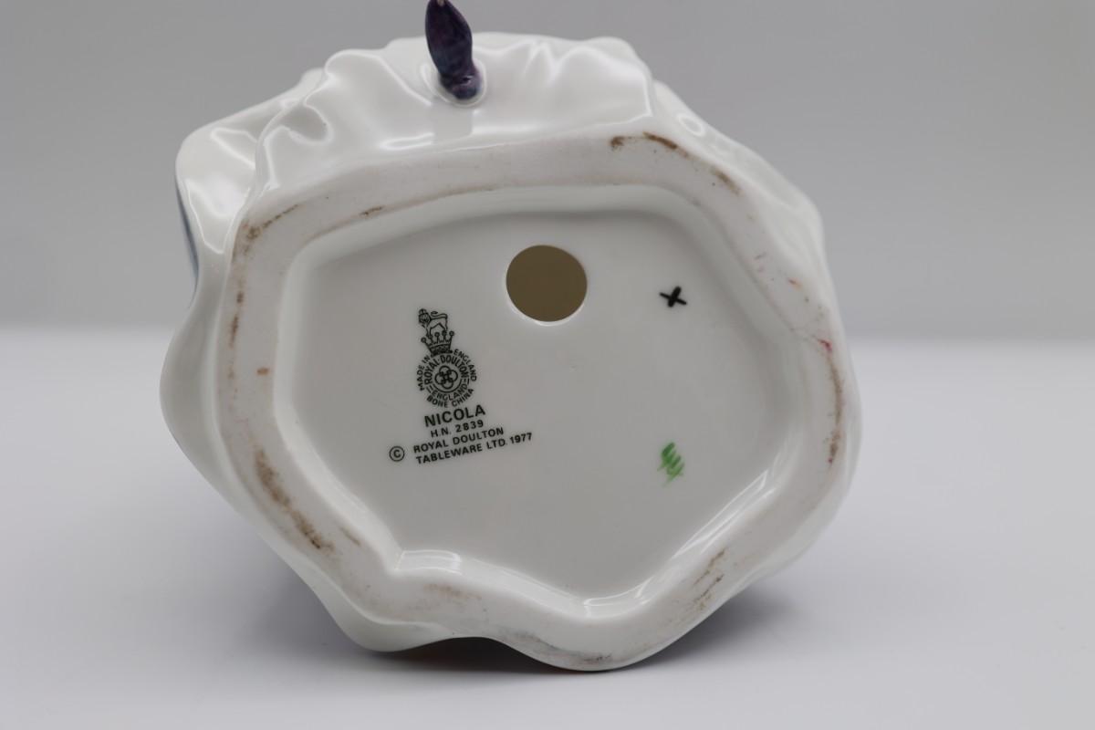 Royal Doulton "Nicola" figurine, HN 2839, produced in 1977. It's part of the "Pretty Ladies" collection.