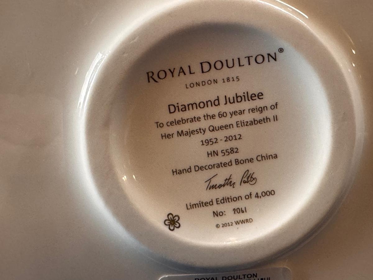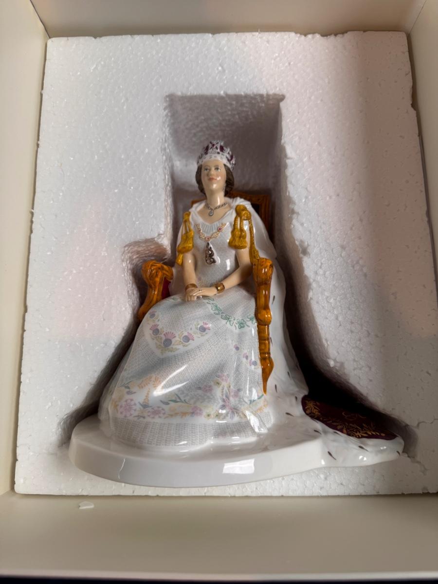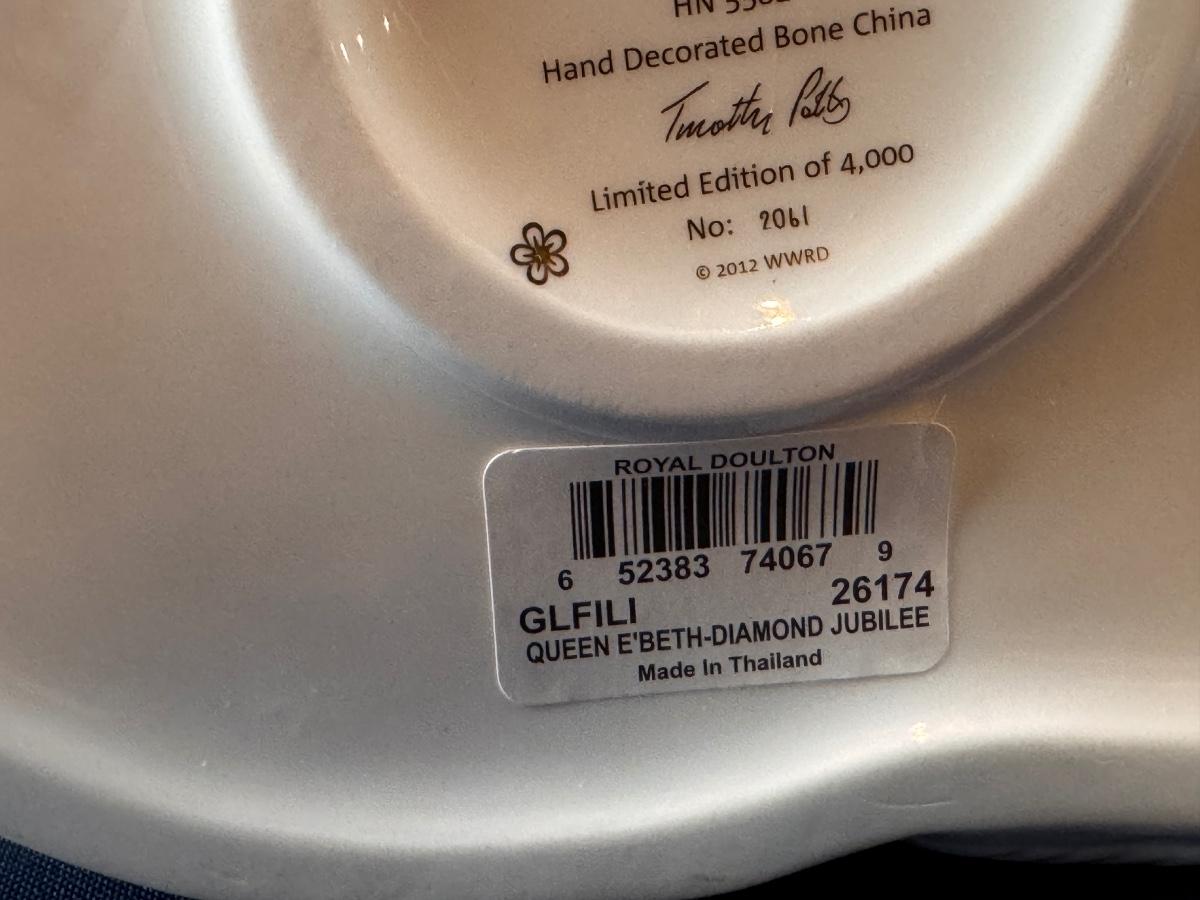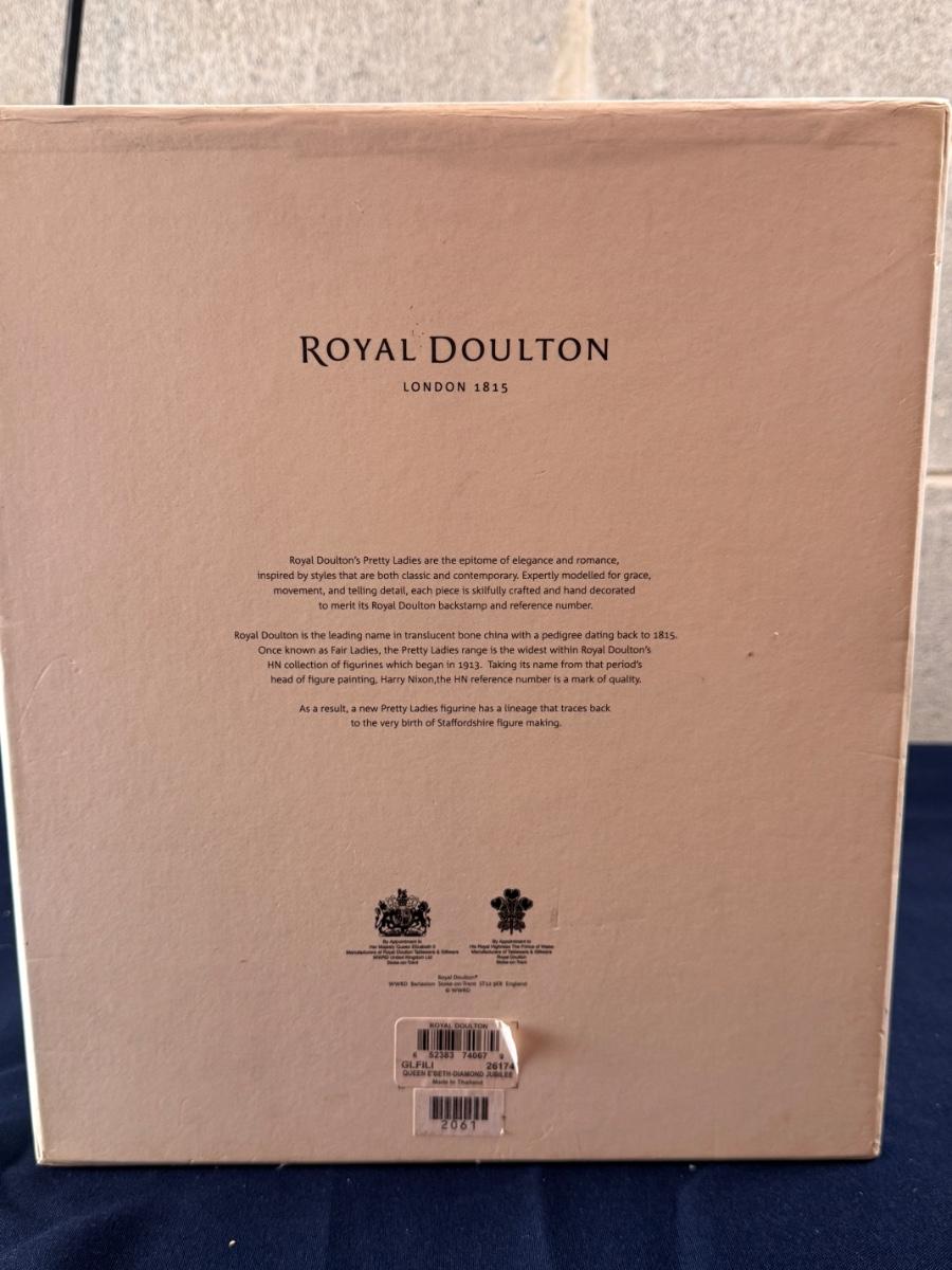 Royal Doulton Porcelain Figurine Diamond Jubilee Queen Elizabeth II. Mint new condition - there are no damages, Comes with original box. Measures is 8 3/4" tall.