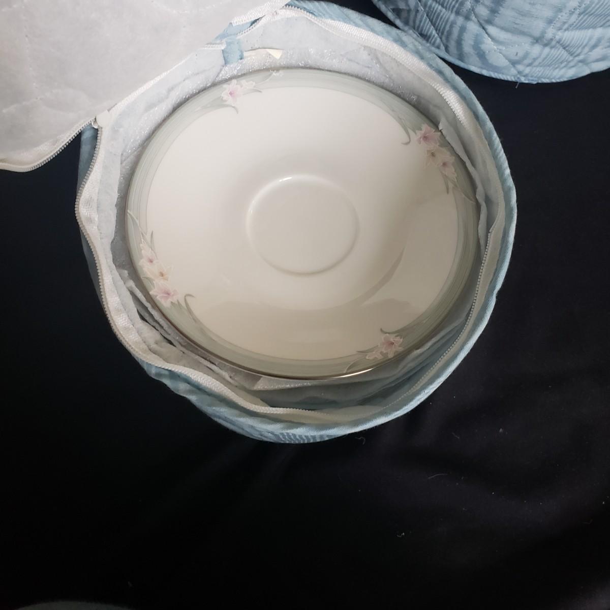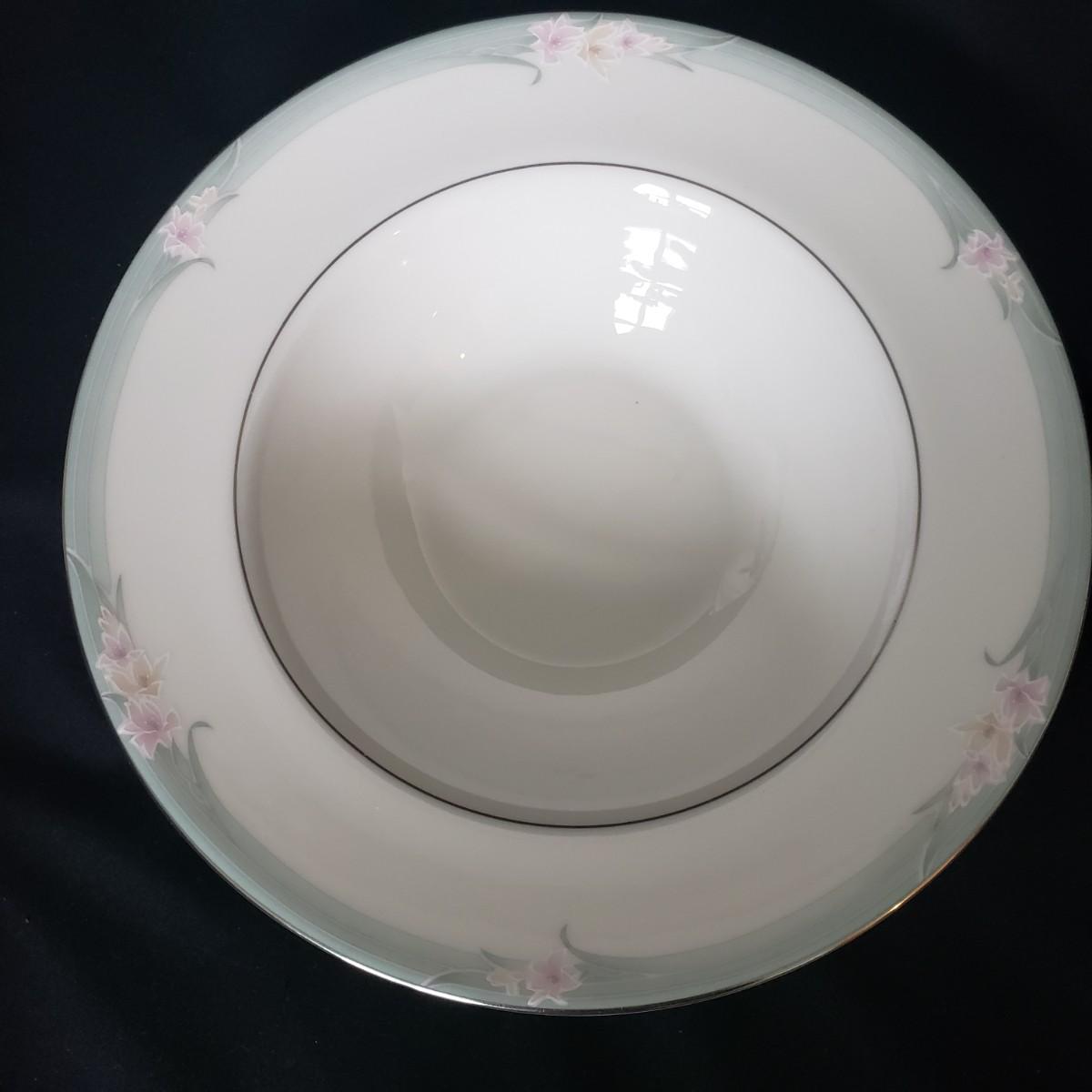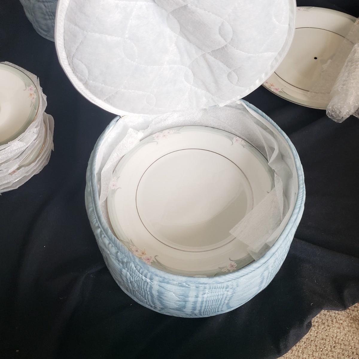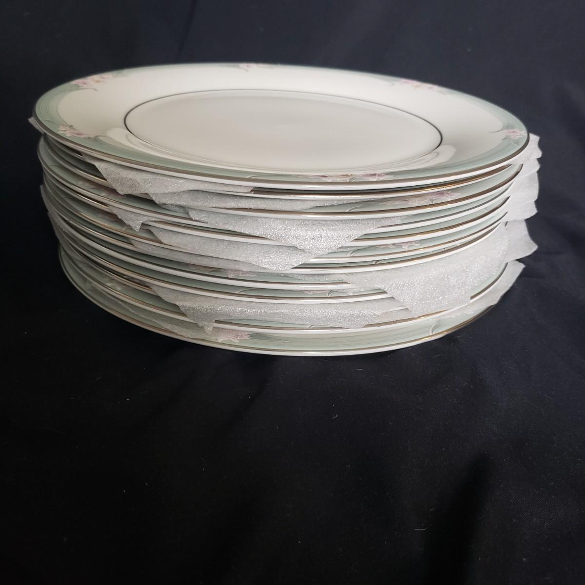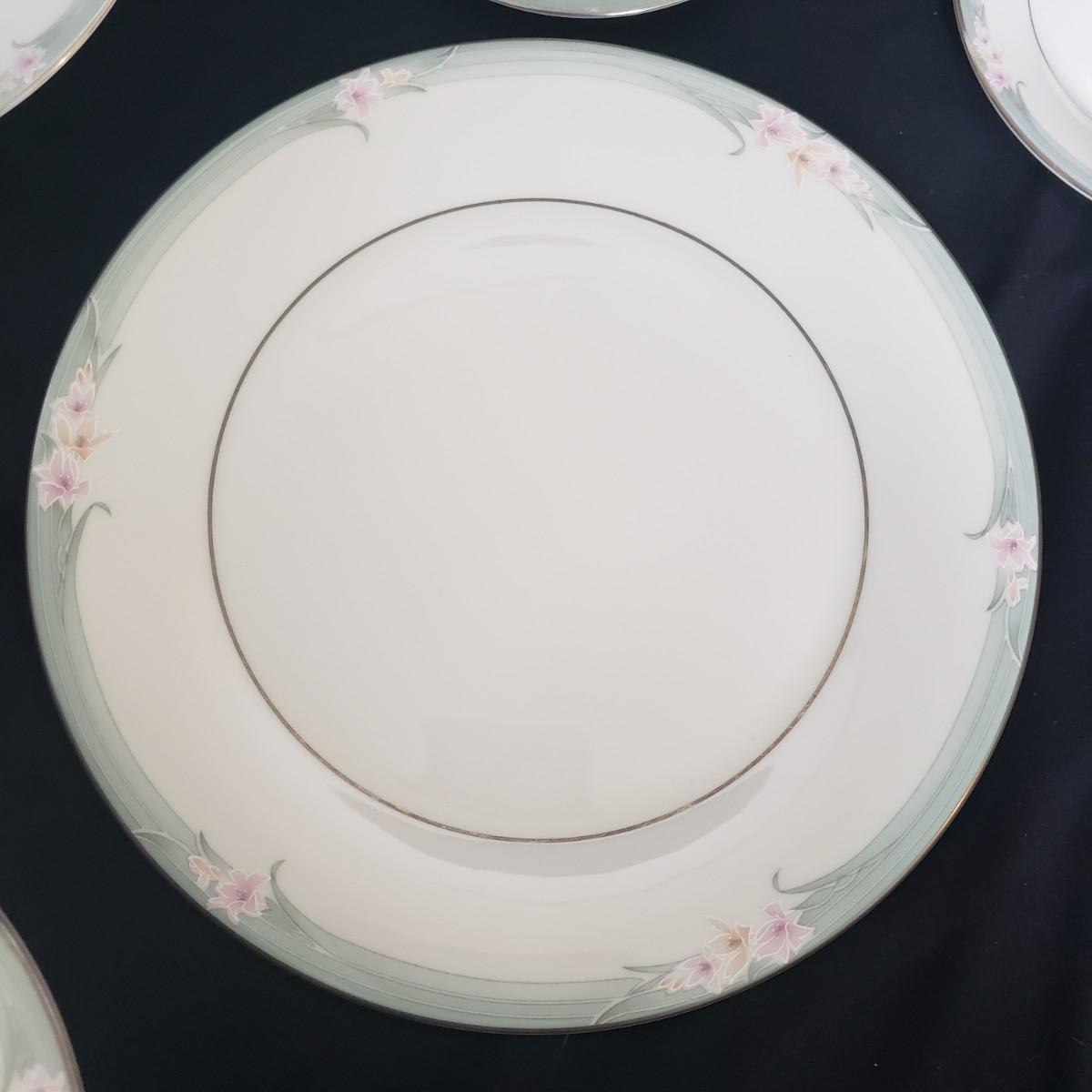 This Royal Doulton China set is their Sophistication pattern. The set contains 12 dinner plates with a 10"D, 13 salad plates, 12 dessert plates, 6 bowls, a serving plate with handle and 12 teacups and saucers. One bowl has some red residue from the bag they were kept it, see picture, otherwise all dishes appear to be blemish free- please come to preview to verify.