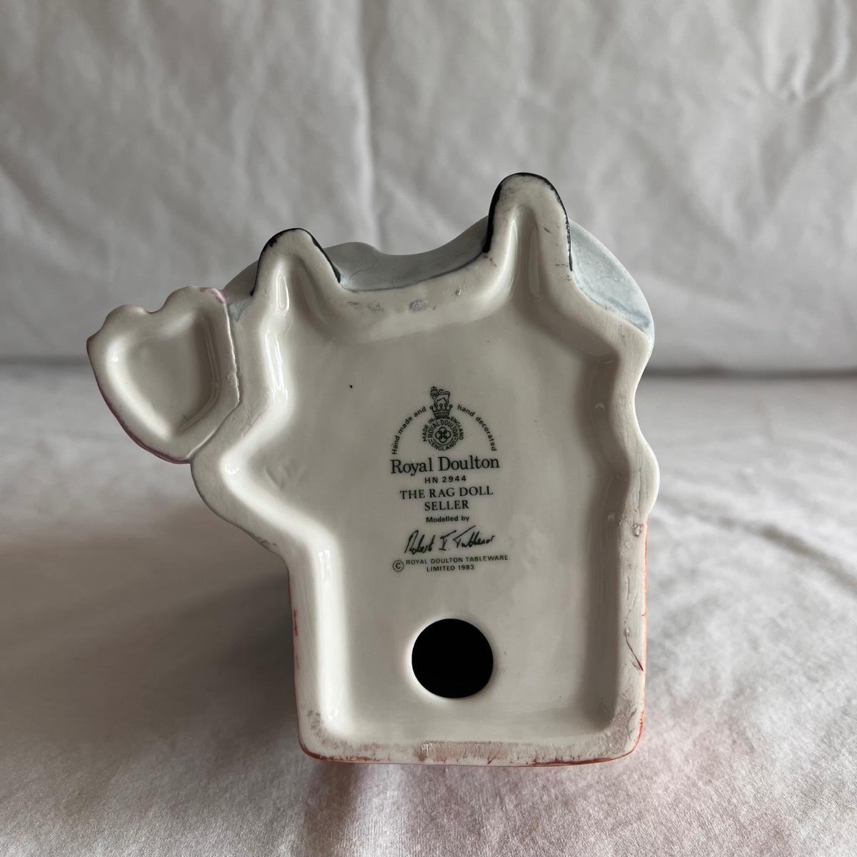 These Royal Doulton porcelain figurines are a collector's dream! The “Rag Doll Seller” figurine measures 4” x 7”H. The “Eventide” figurine measures 4” x 8”H. Each are stamped with “handmade and hand decorated.” See other lots with more Royal Doulton collectibles. Shipping available.