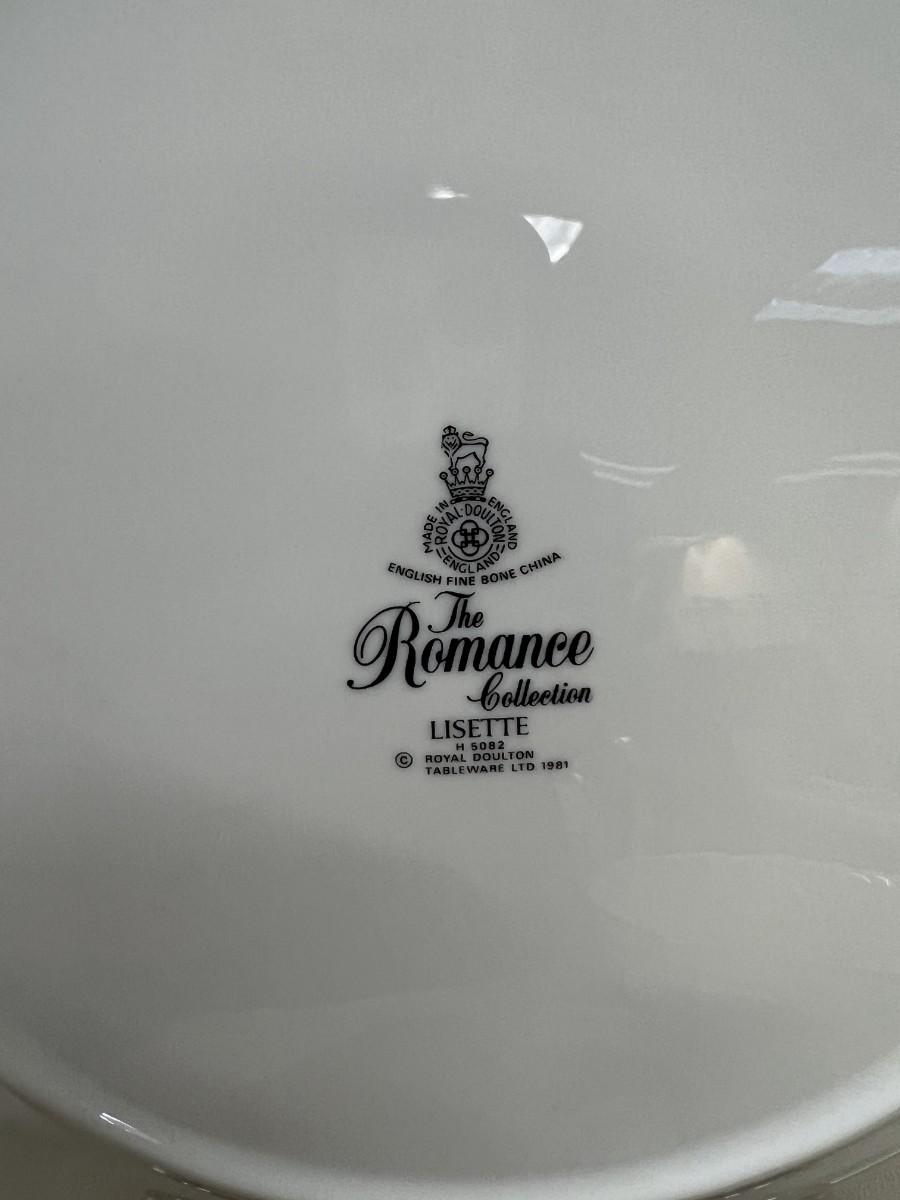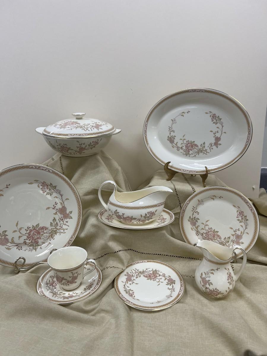 16 dinner plates, 16 bread plates, 16 salad plates, 13 cups, 13 saucers.