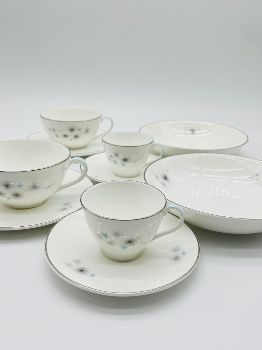 24 pieces Includes = (6) Dinner plates ~ (6) Salad plates ~ (6) Dessert plates ~ (2) Coupe cereal bowls ~ (2) Flat Cup & saucers ~ (2) Flat demitasse cup & saucers