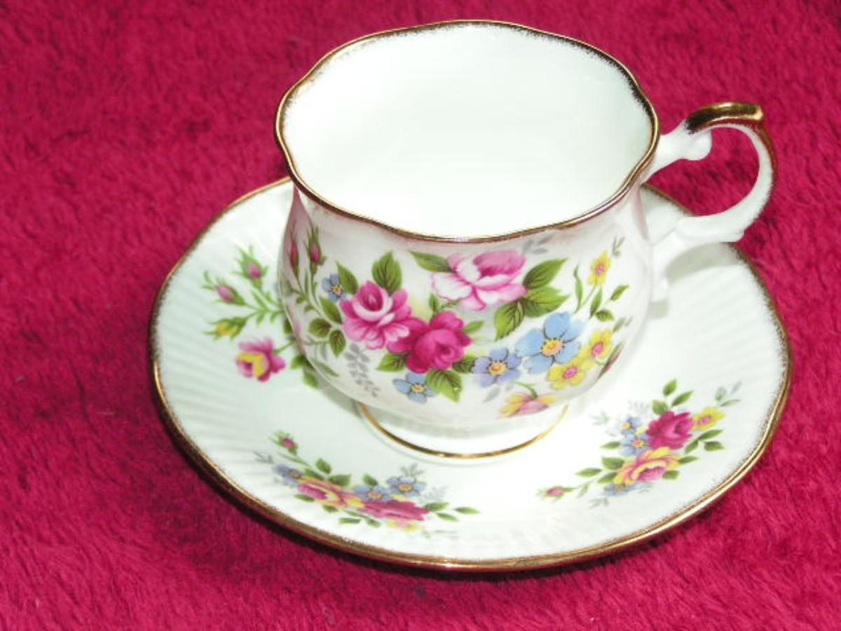 Royal Dover fine bone china teacup & saucer, made in England, gold trimmed