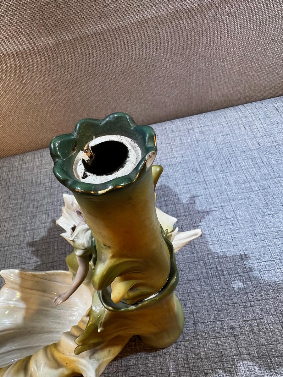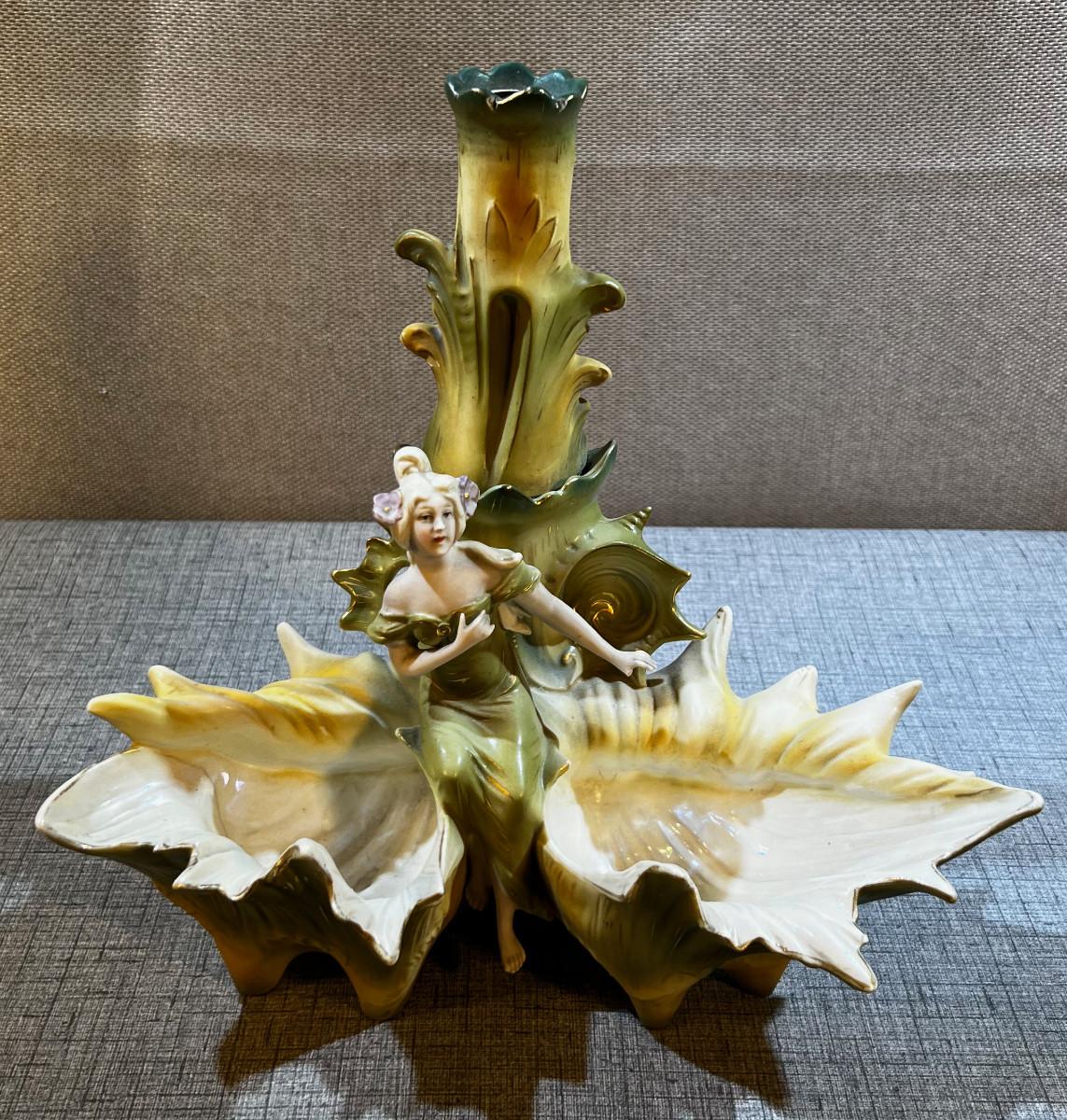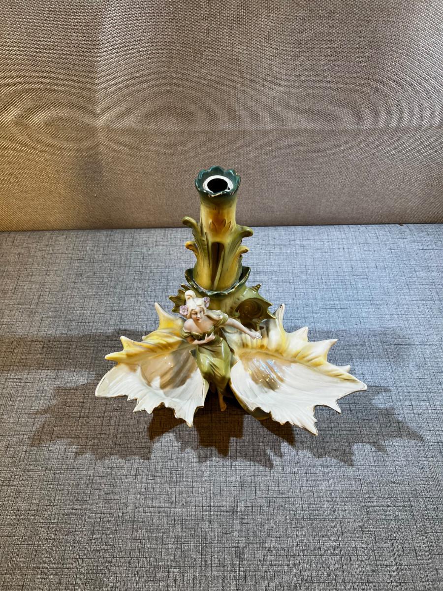 Royal Dux Art Nouveau Dish Candle Stick  Green