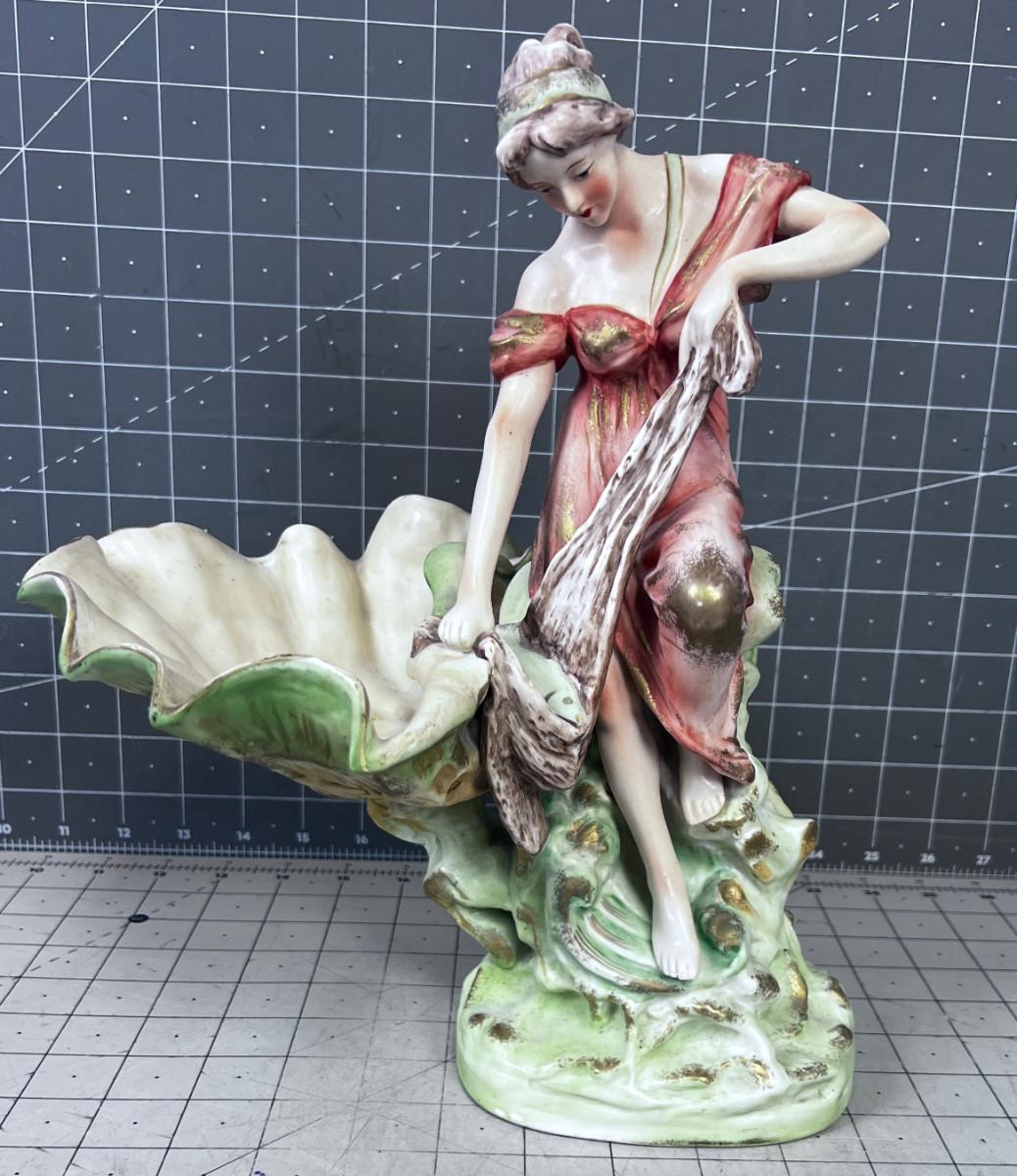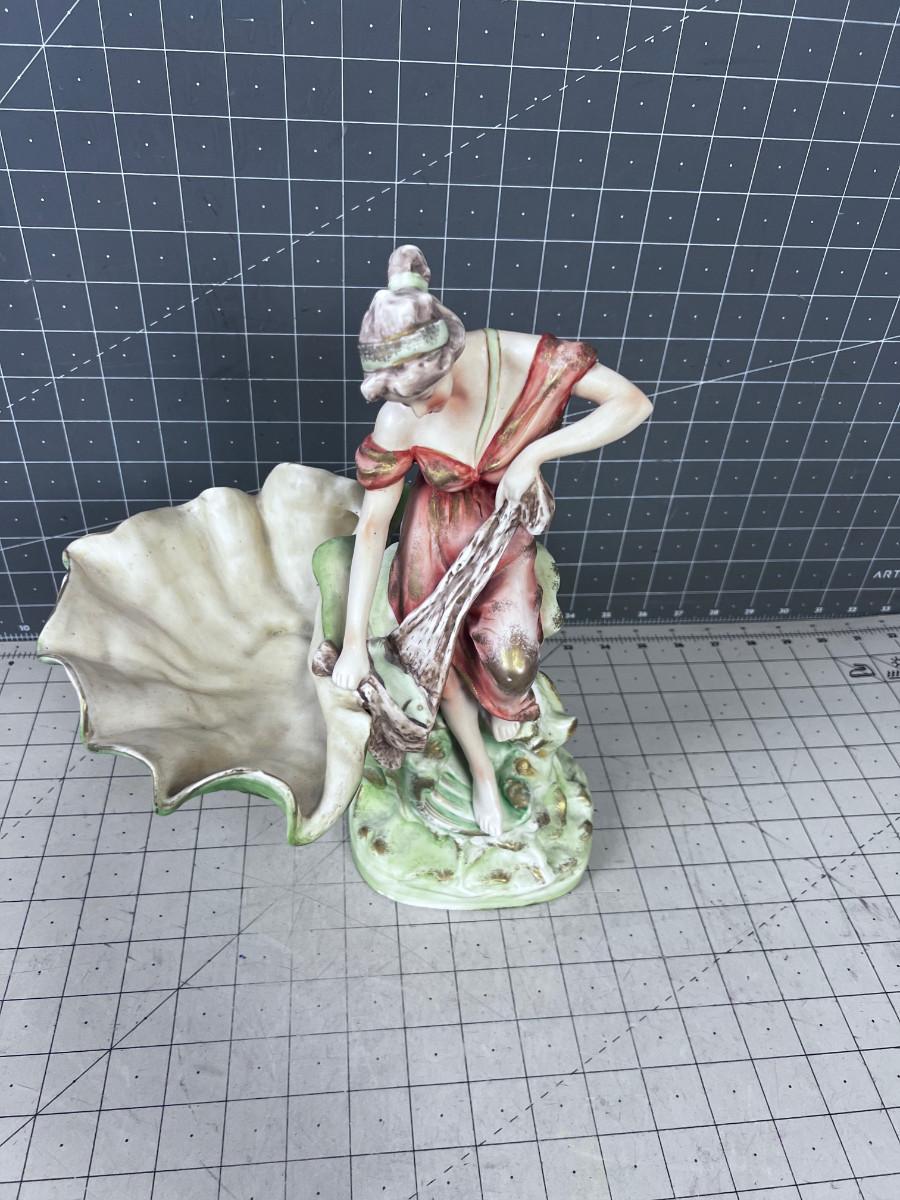 Draped Woman Standing on The Rocky Outcrop with Fish. 12-1/2 " Tall . eBay Priced at $400.