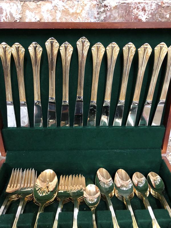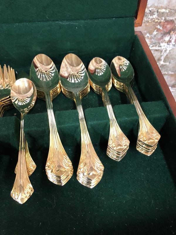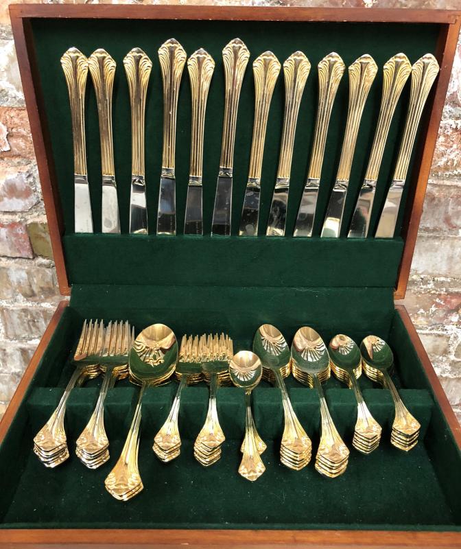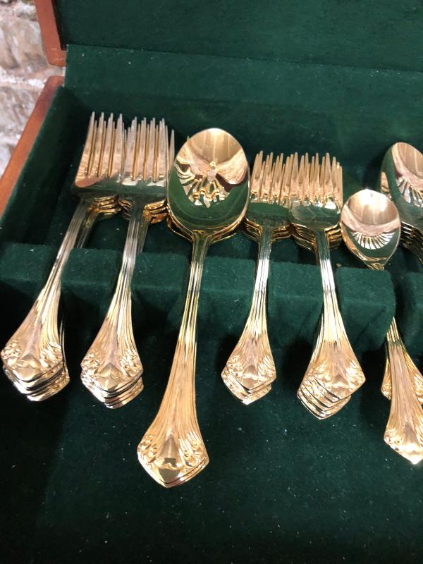 Royal Gallery Gold Toned Flatware Service for 8 w/Serving Pieces