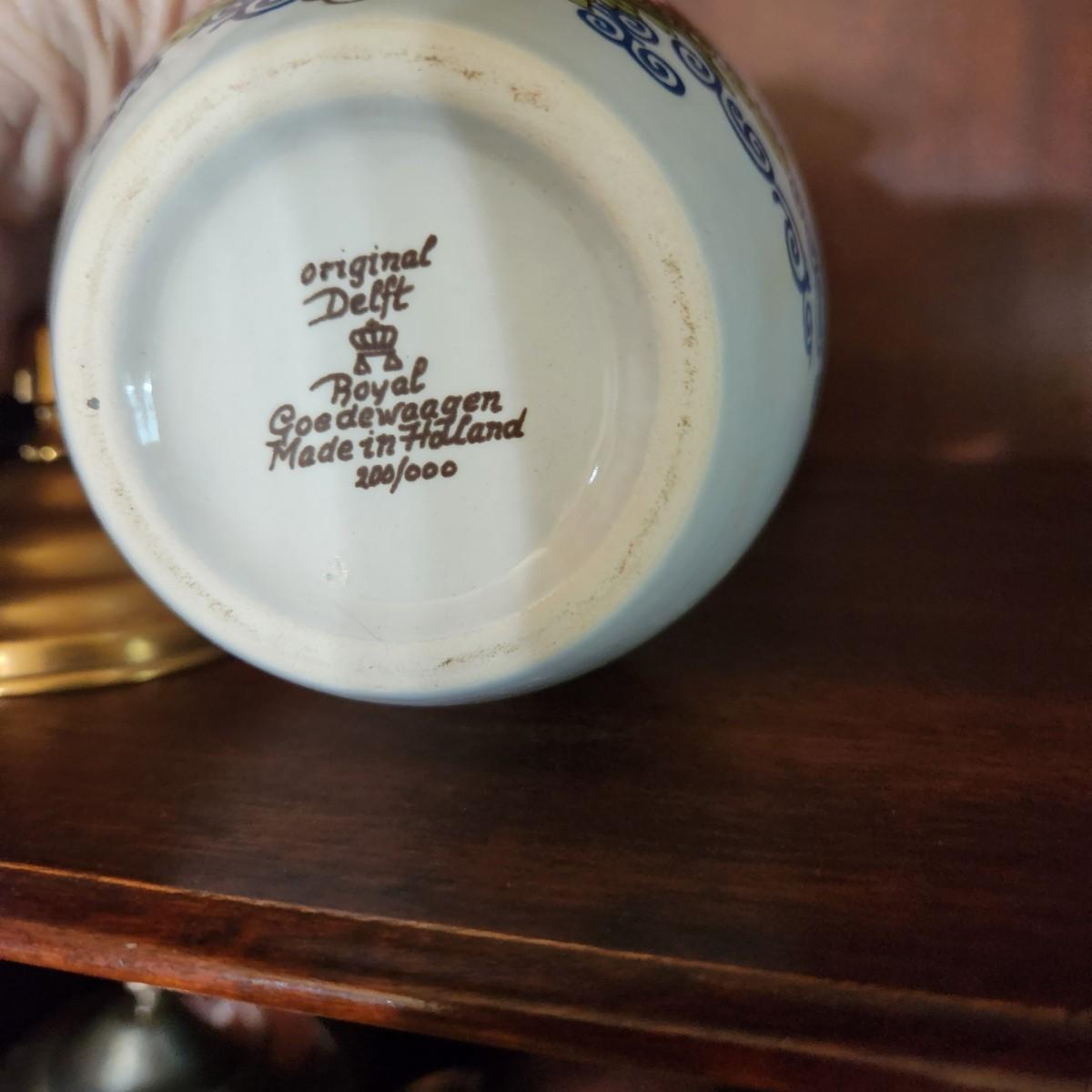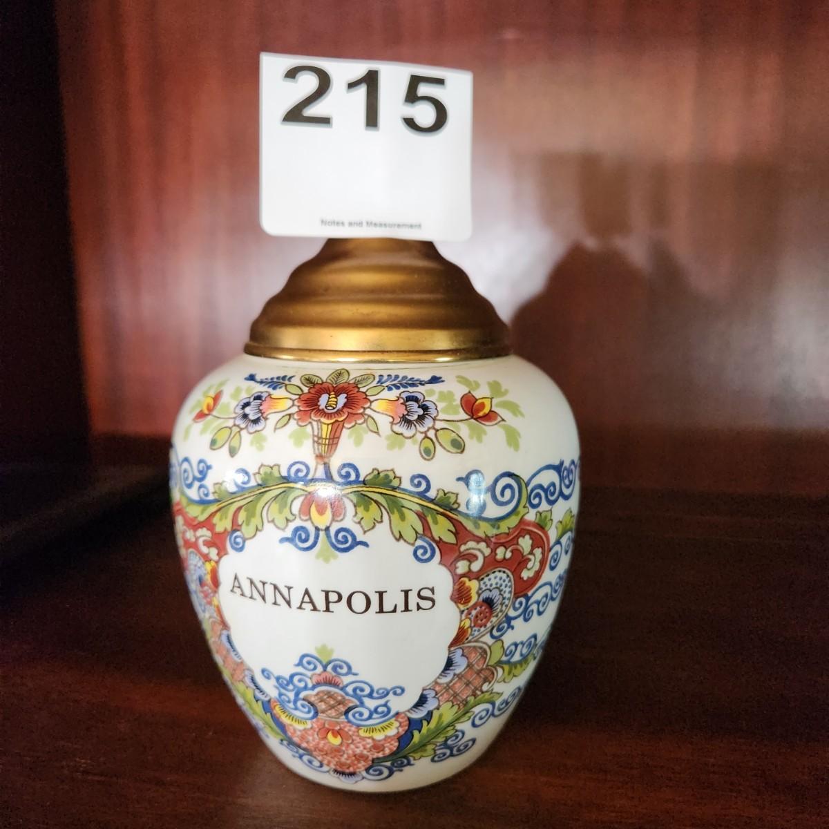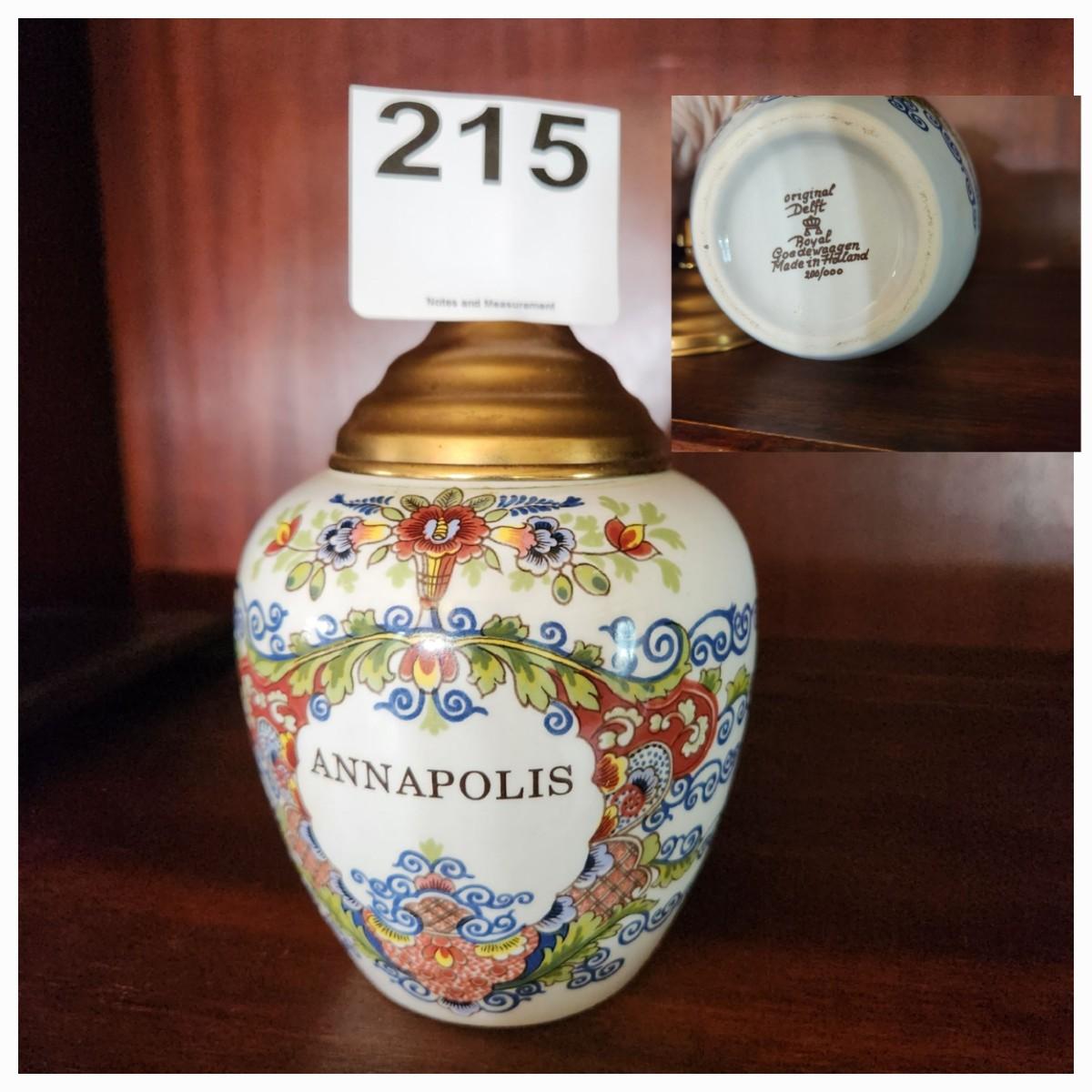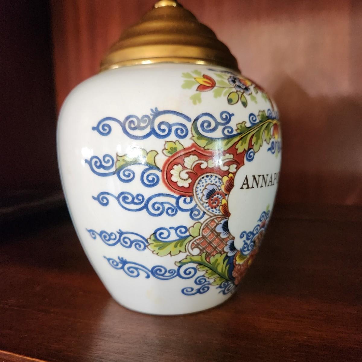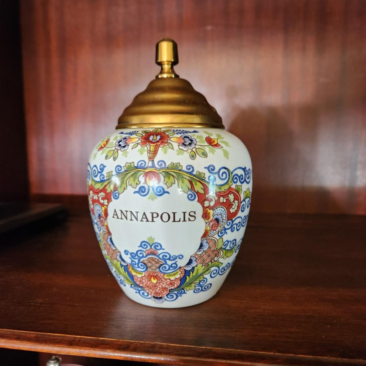 Royal Goedewaagen Delft Annapolis Maryland 7" Ginger Tobacco Jar Brass Lid