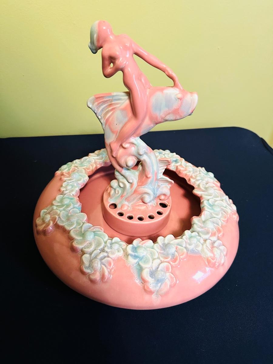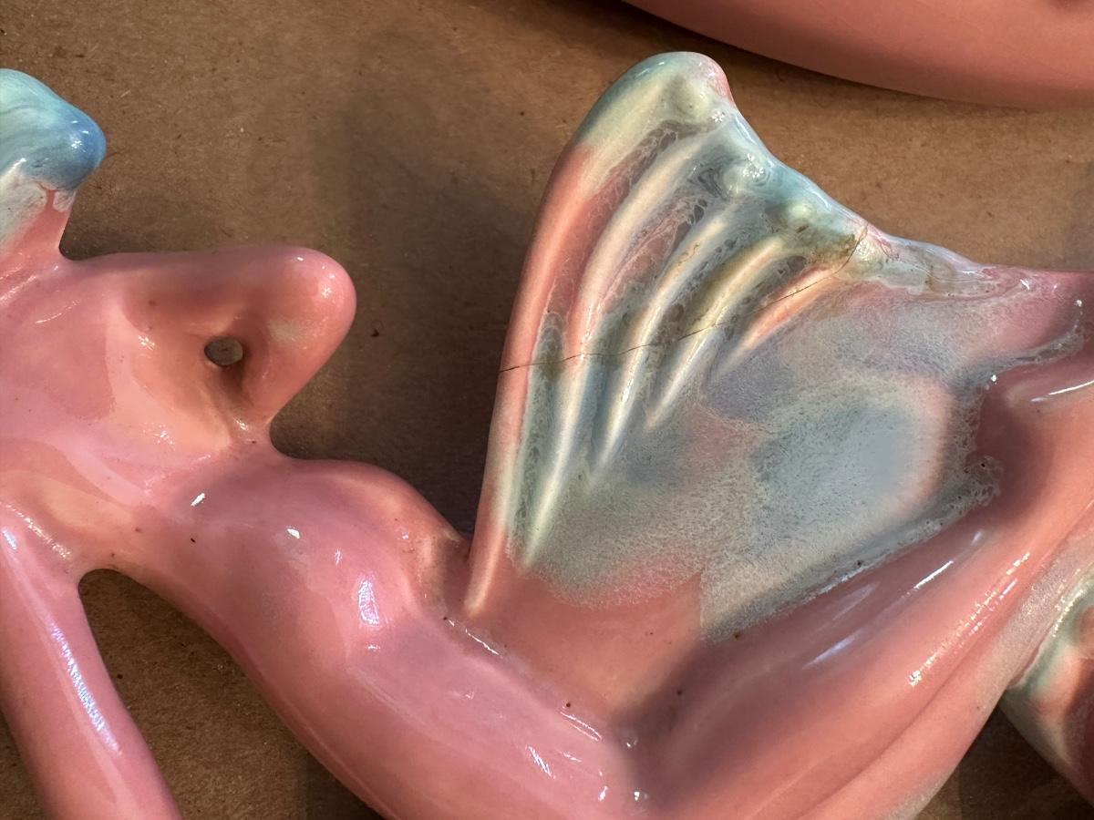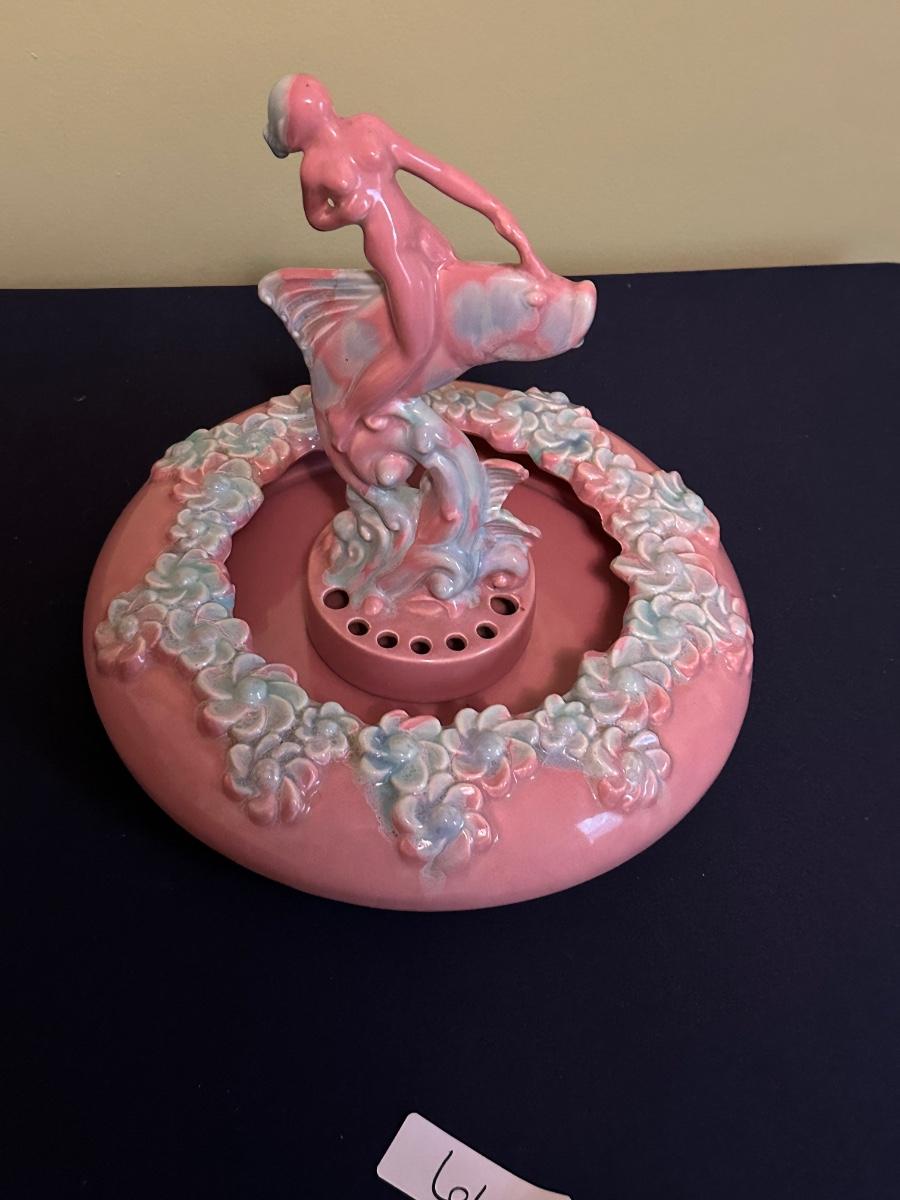 ROYAL HAEGER USA ART POTTERY FROG FLOWER VESSEL (REPAIRED ON TIP OF FISH SEE PHOTOS) 11" ACROSS 7" TALL