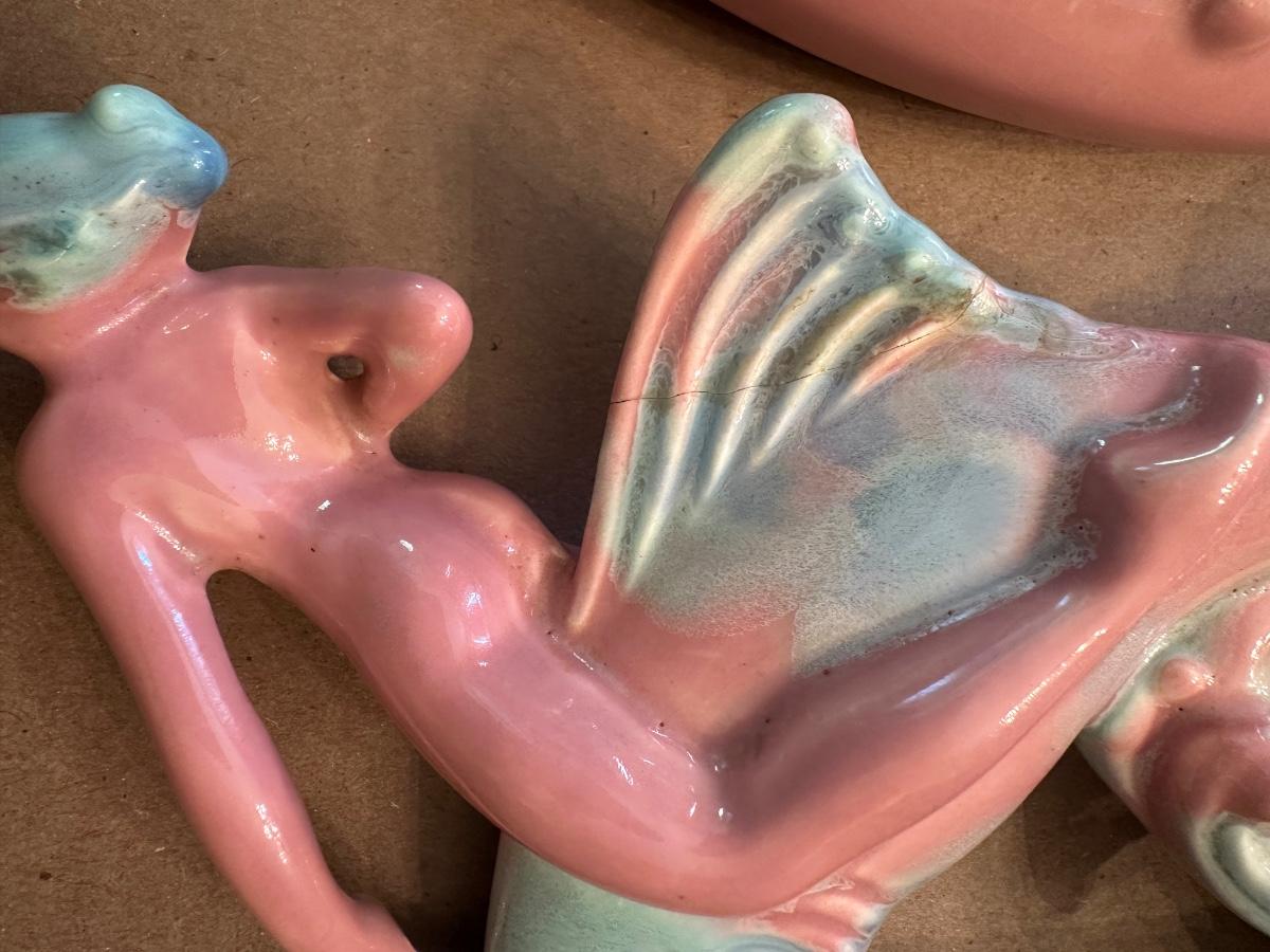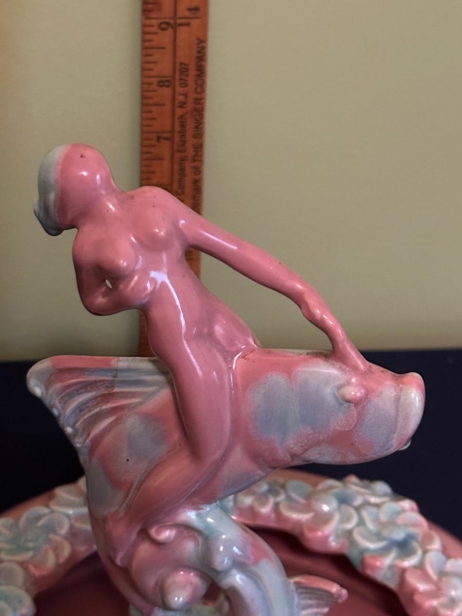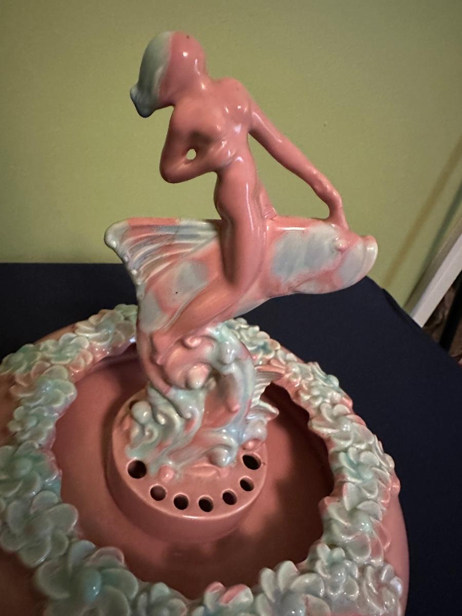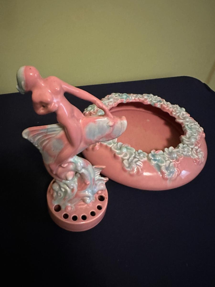 ROYAL HAEGER USA ART POTTERY FROG FLOWER VESSEL (REPAIRED ON TIP OF FISH SEE PHOTOS) 11" ACROSS 7" TALL