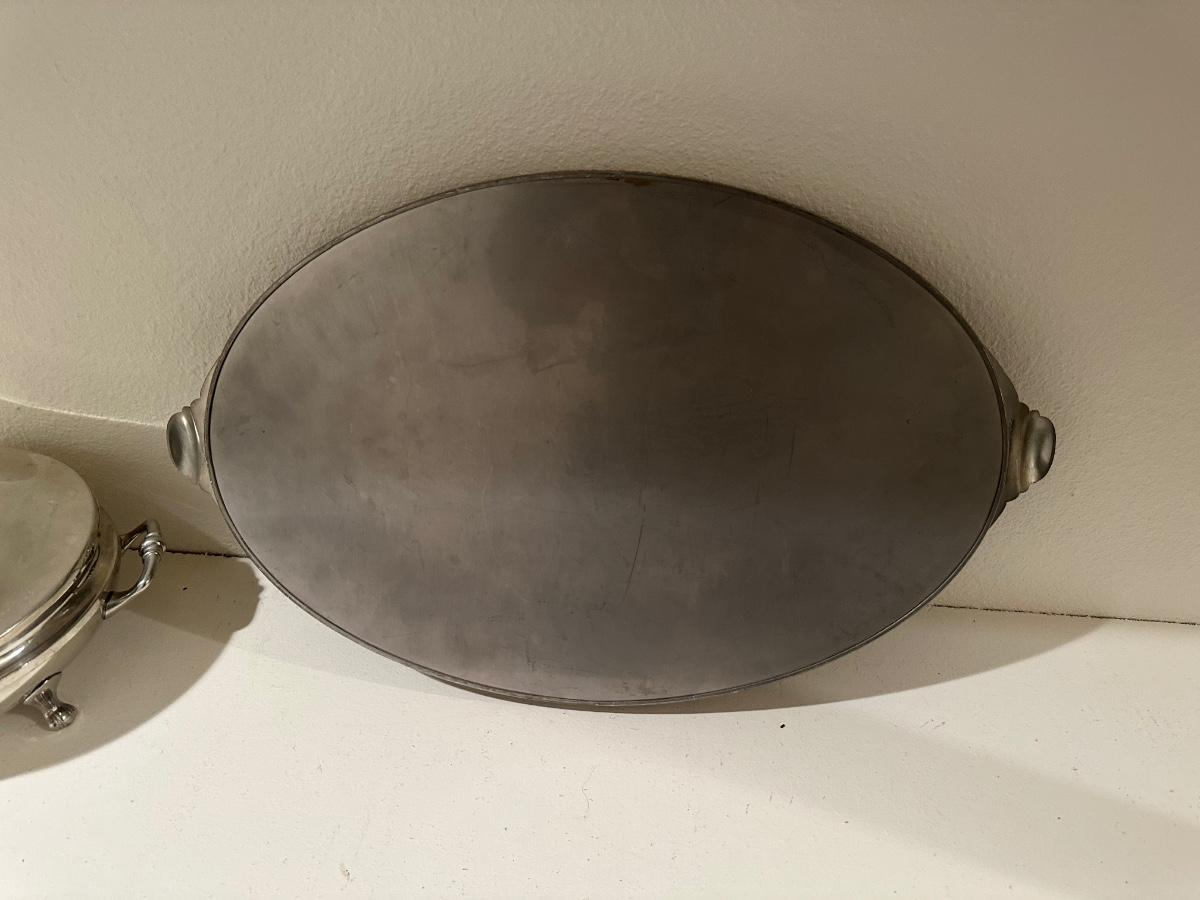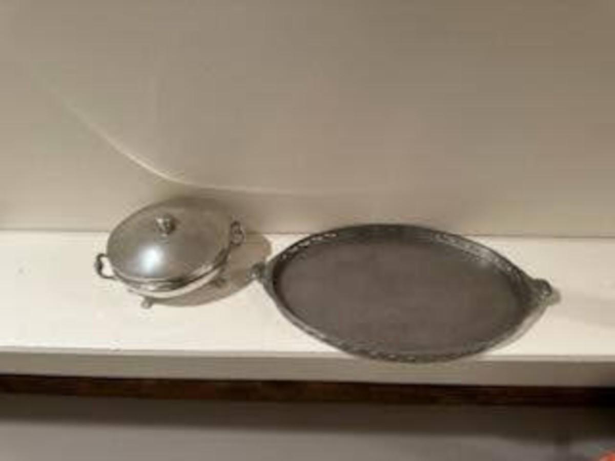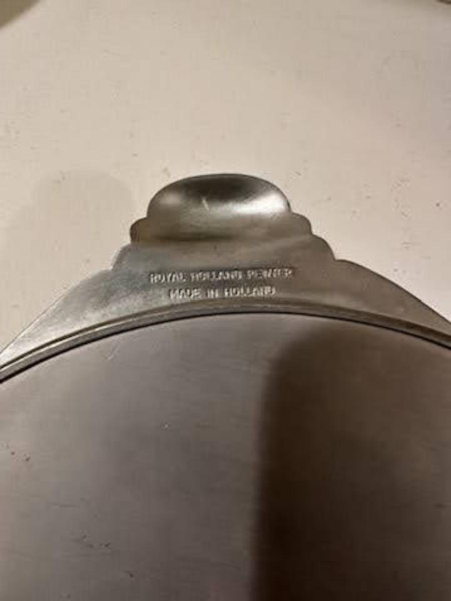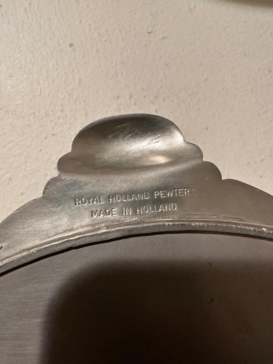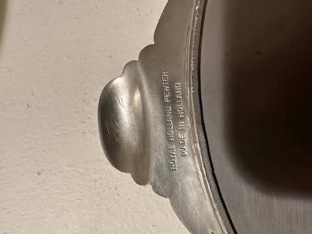 ROYAL HOLLAND PEWTER SERVING TRAY AND A PEWTER SERVING DISH