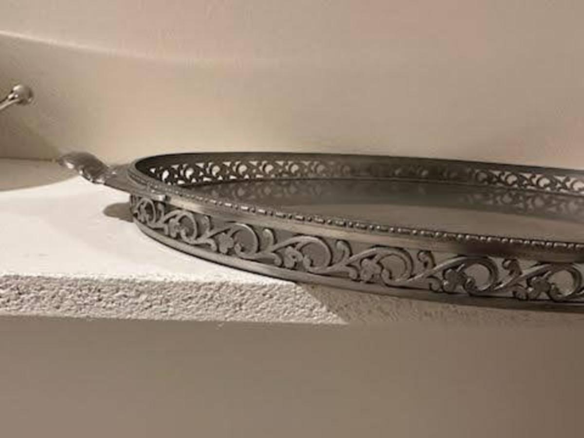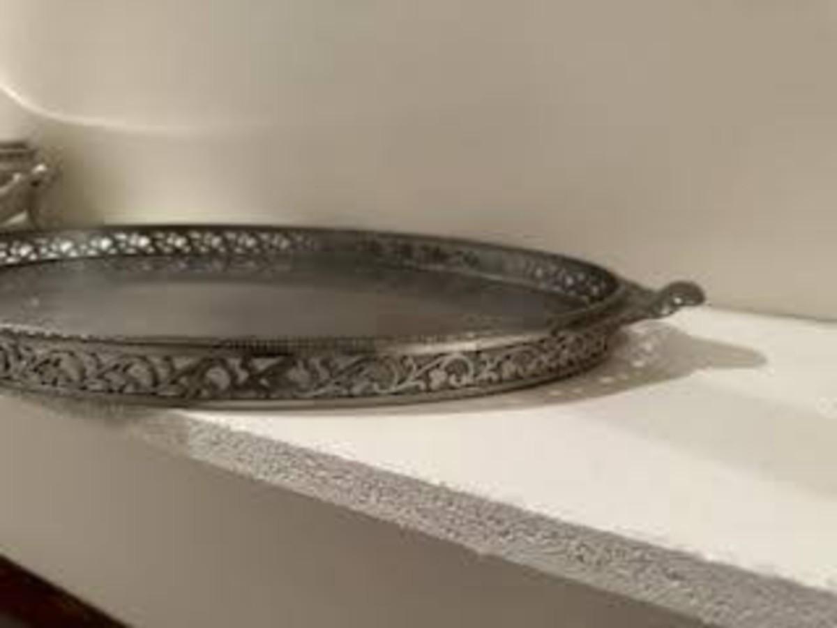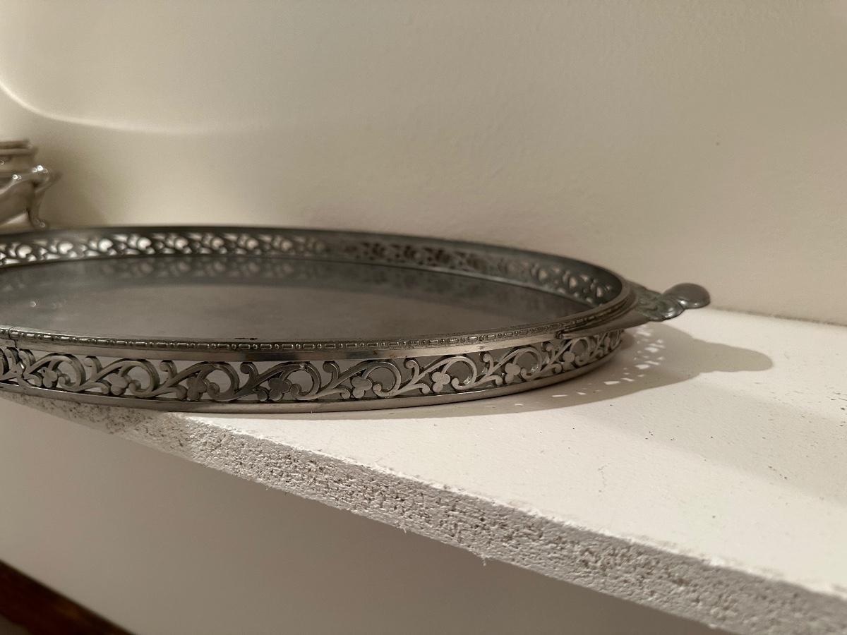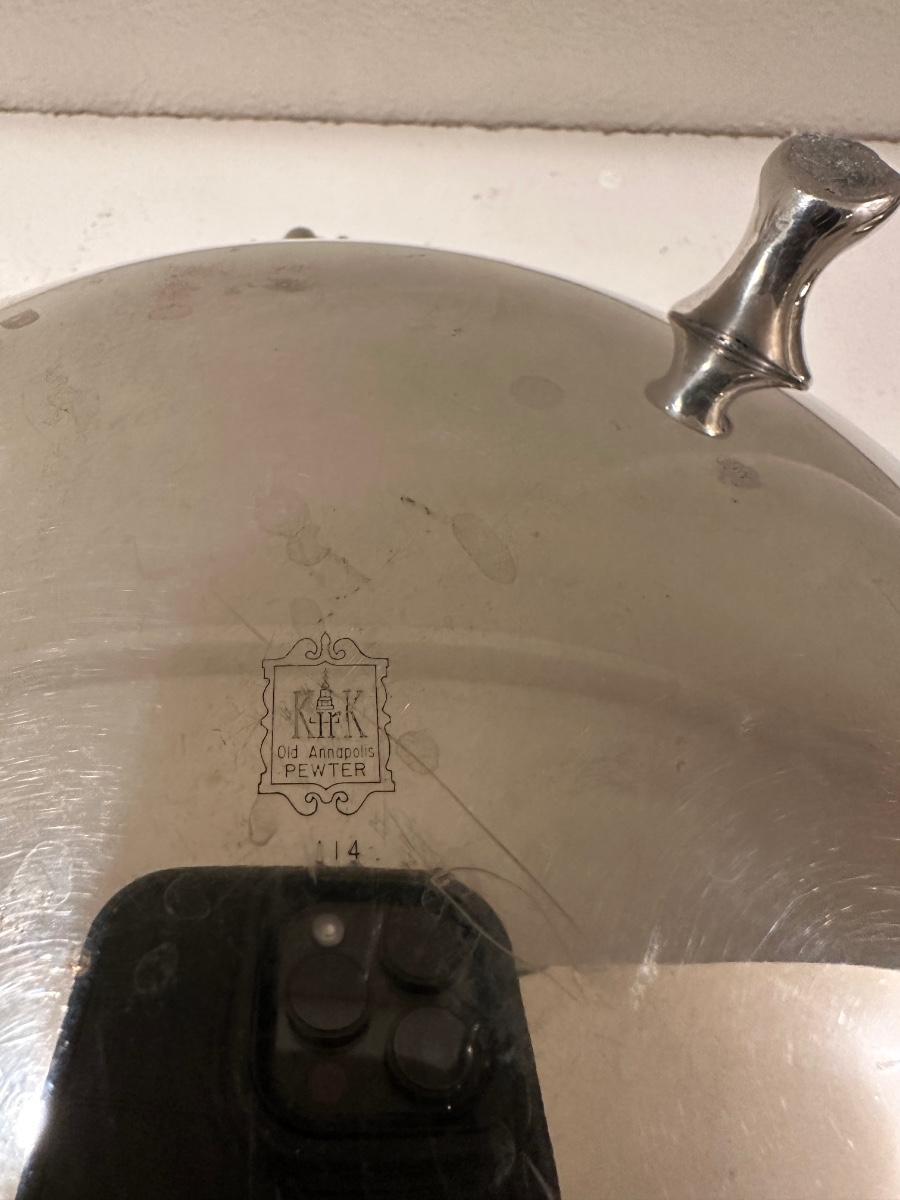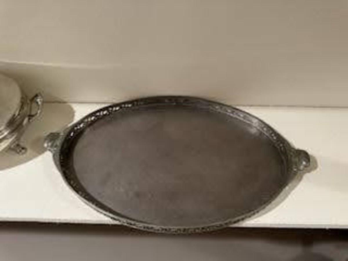 ROYAL HOLLAND PEWTER SERVING TRAY AND A PEWTER SERVING DISH
