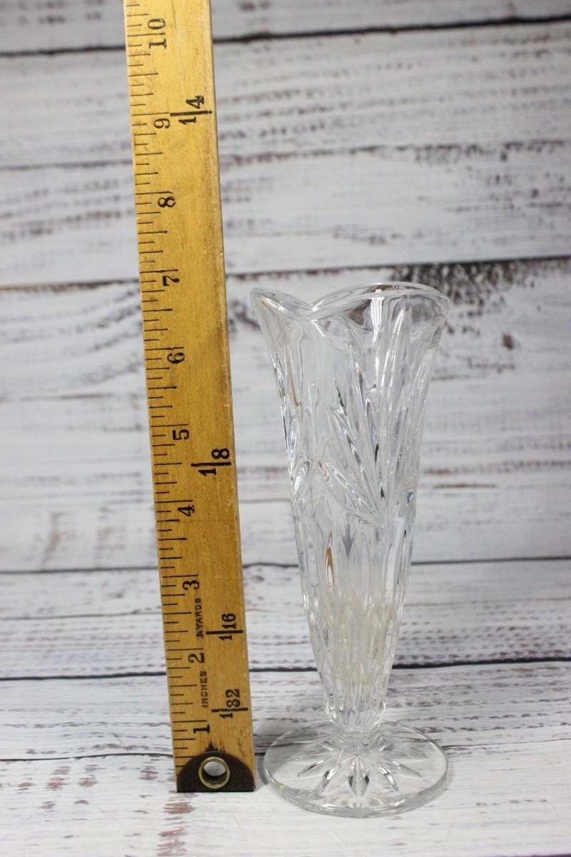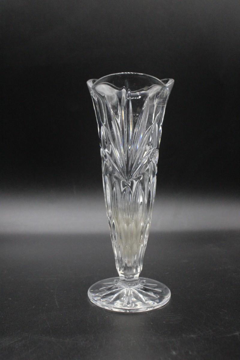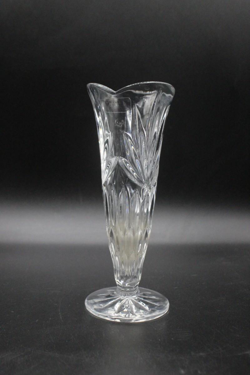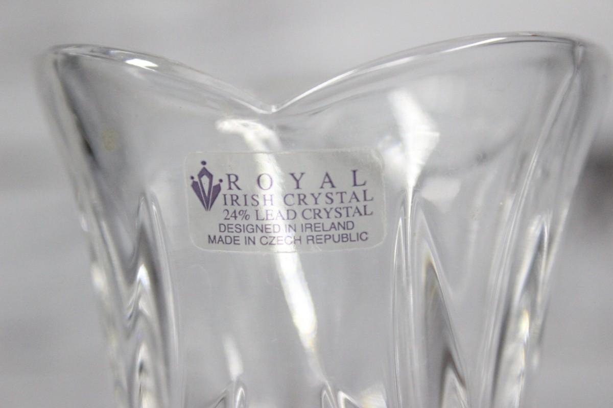 6.5" Royal Irish Crystal vase, there is no significant damage or scratches to the vase. The sticker reads "Royal Irish Crystal 24% Lead Crystal Designed in Ireland Made in Czech Republic."