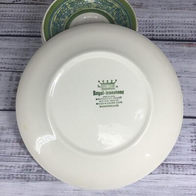 China set of 10 plates by Royal - Ironstone with varying plate sizes: 5 1/2", 6", and 10." There are no significant scratches or chips to the plates.
