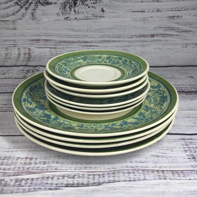 Royal Ironstone Green Blue Grape & Flowers Dinnerware Plate Set