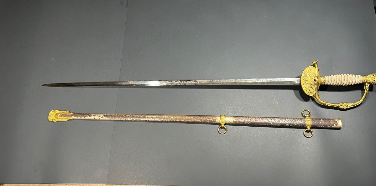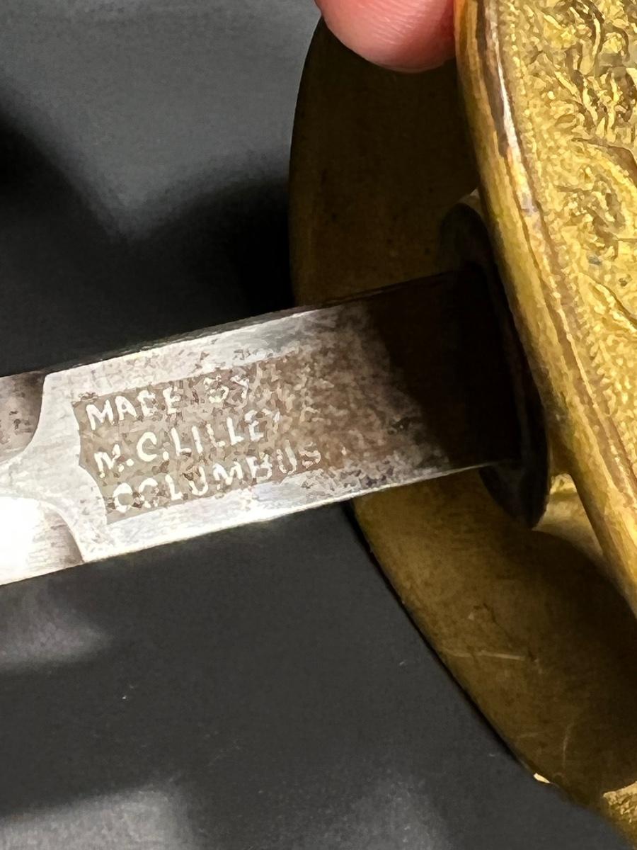 Folding Clam shell handle (ID) With sheath. Decorations on the blade