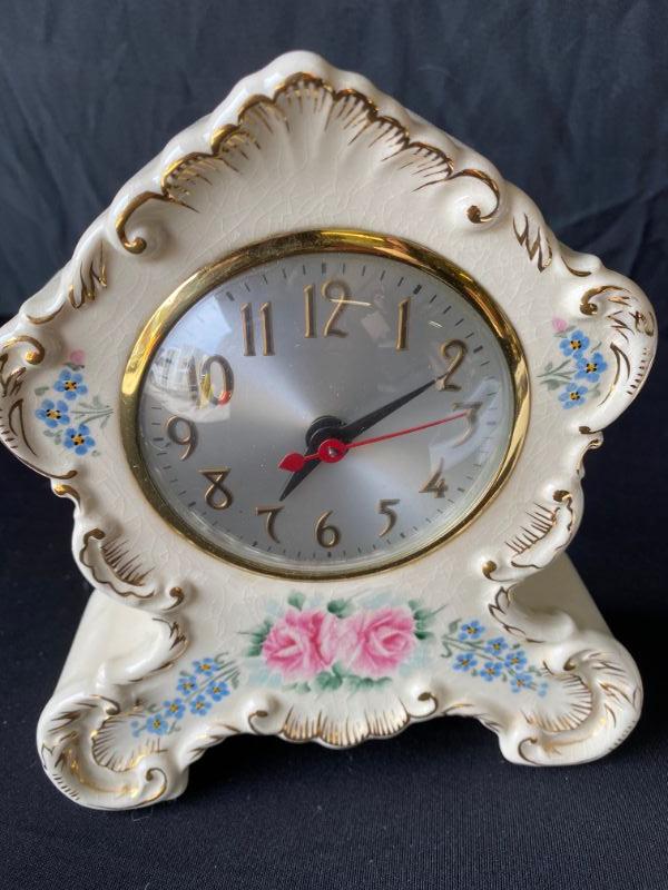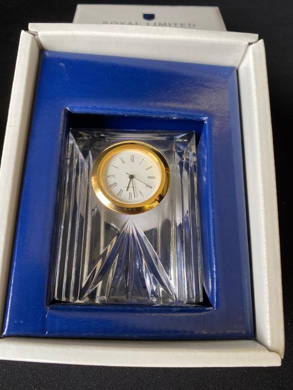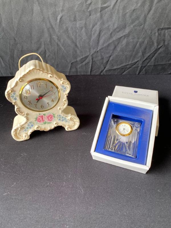Royal Limited Crystal Linear Clock in box and Johnson Hand Decorated Floral Clock (does not work) - Lot 375