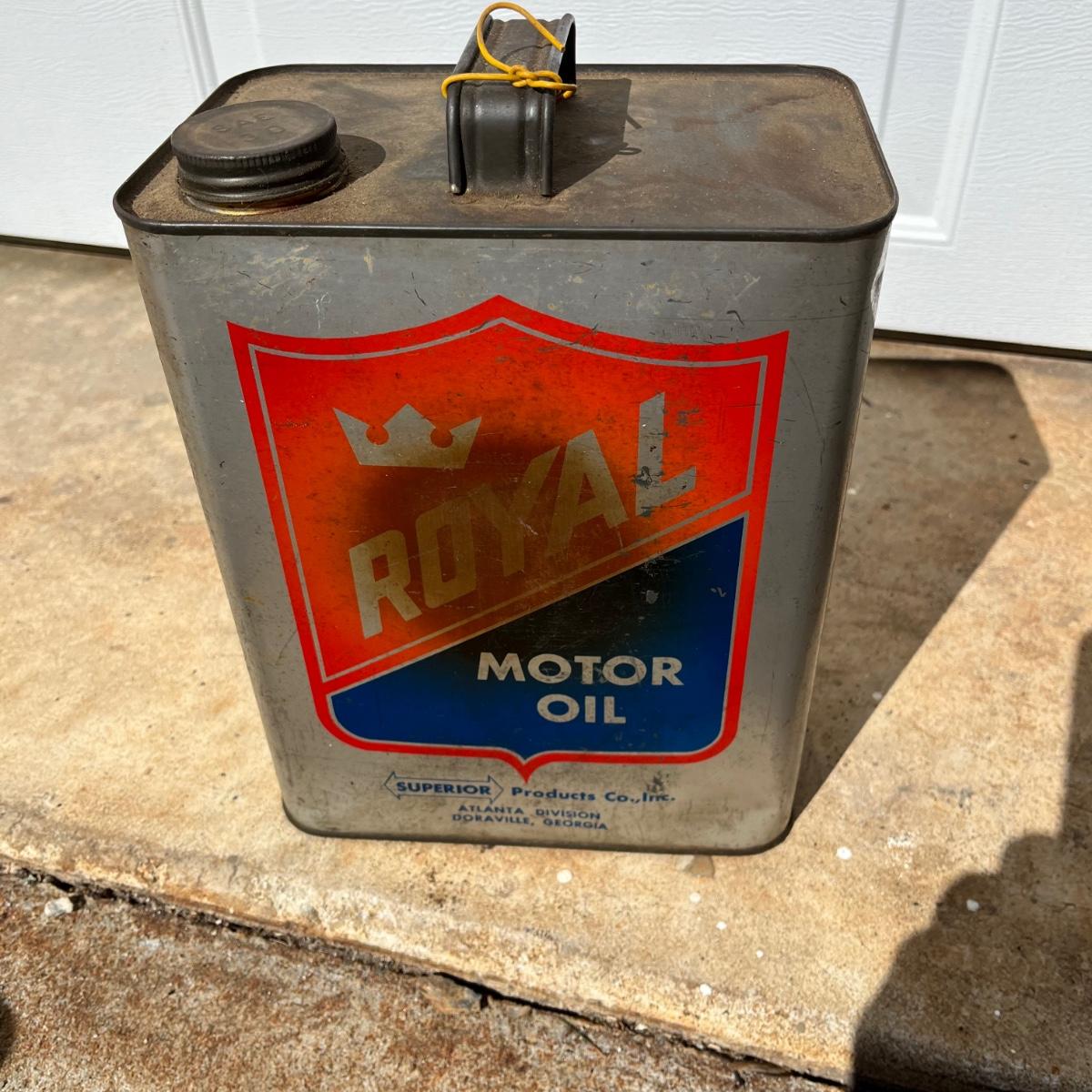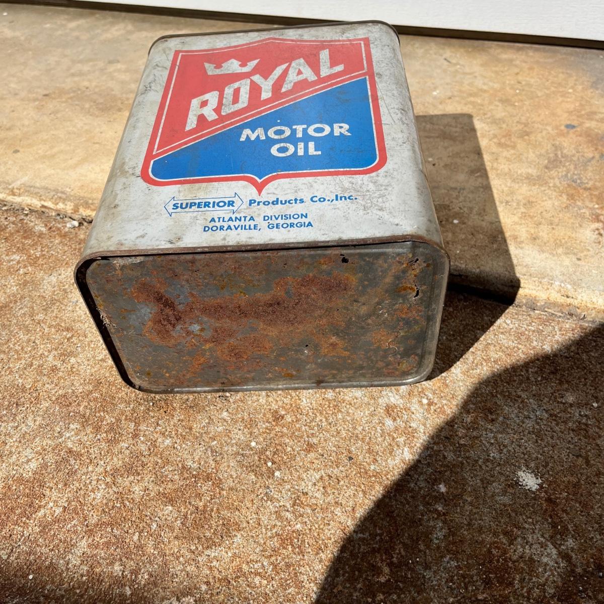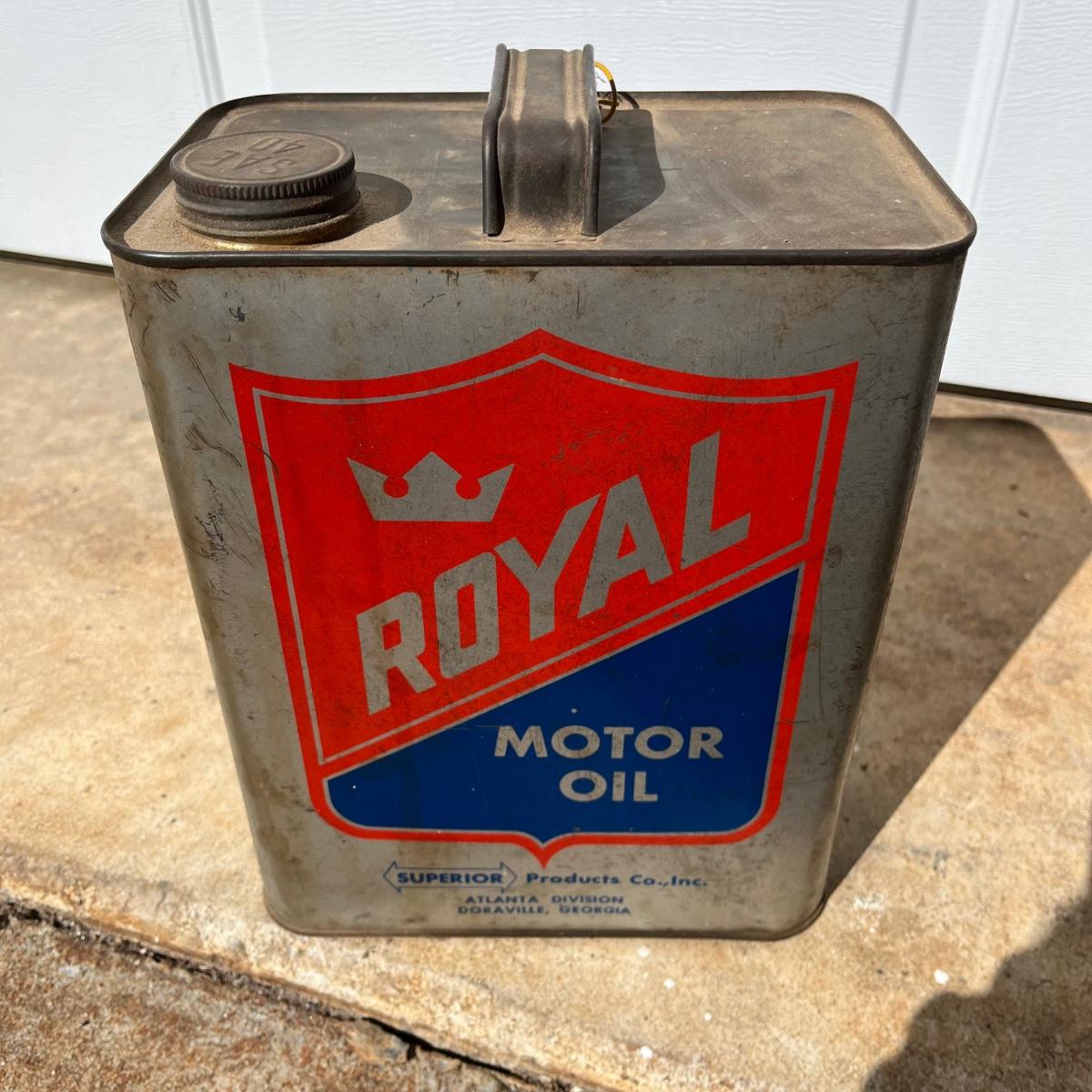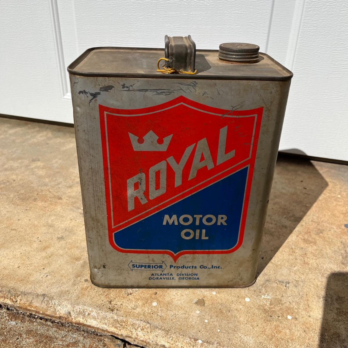 Lot includes two Royal motor oil two gallon cans. Cans have dents and scratches, see pictures.
