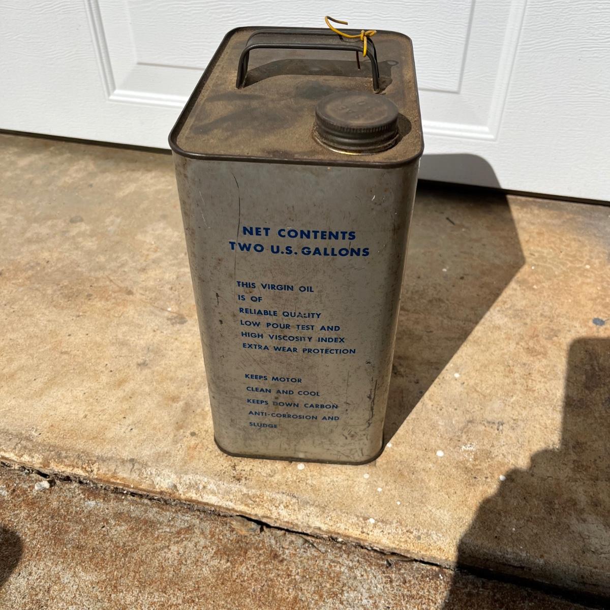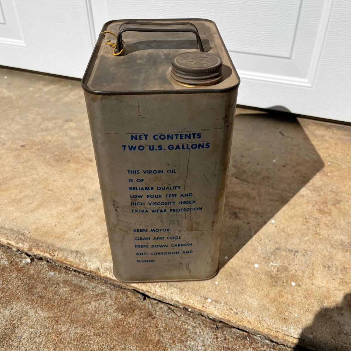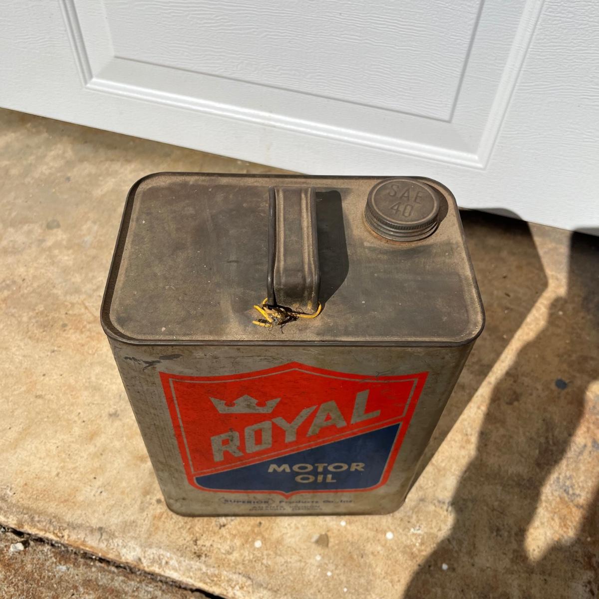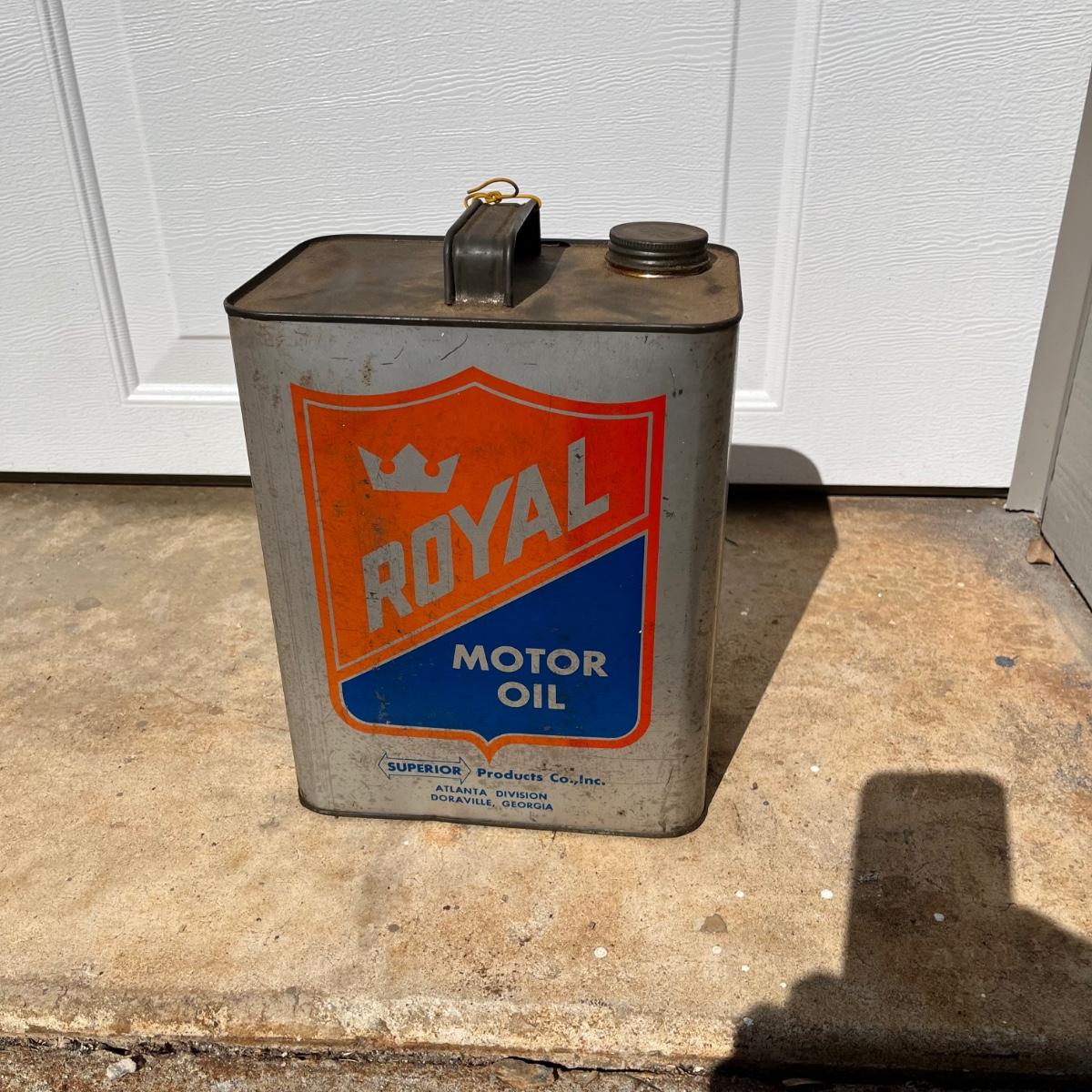Lot includes two Royal motor oil two gallon cans. Cans have dents and scratches, see pictures.