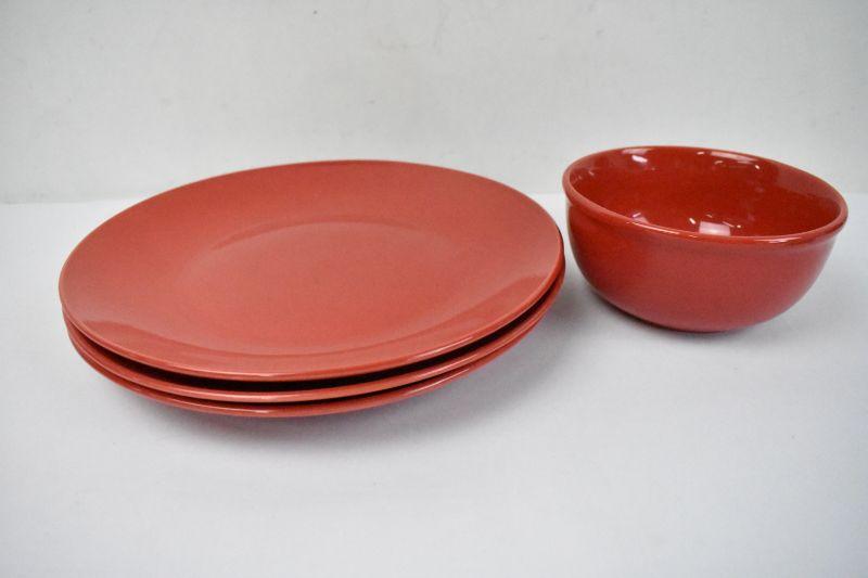 Royal Norfolk 3 Red Plates & 1 Red Bowl