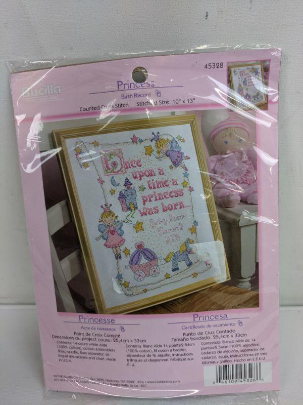 Parent's Choice Royal Plush Blanket, Pink, 30" x 40" & Bucilla Princess Birth Record Cross Stitch - New