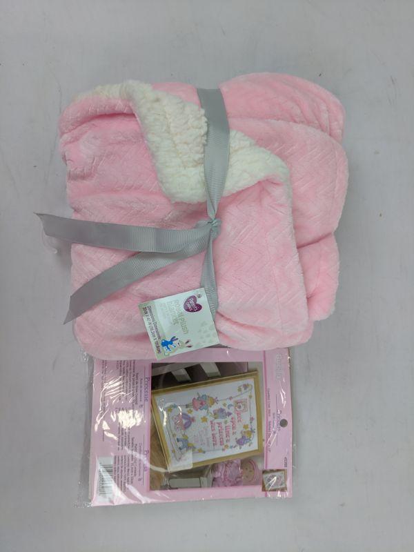 Royal Plush Blanket, Pink, 30" x 40" & Princess Birth Record Cross Stitch - New