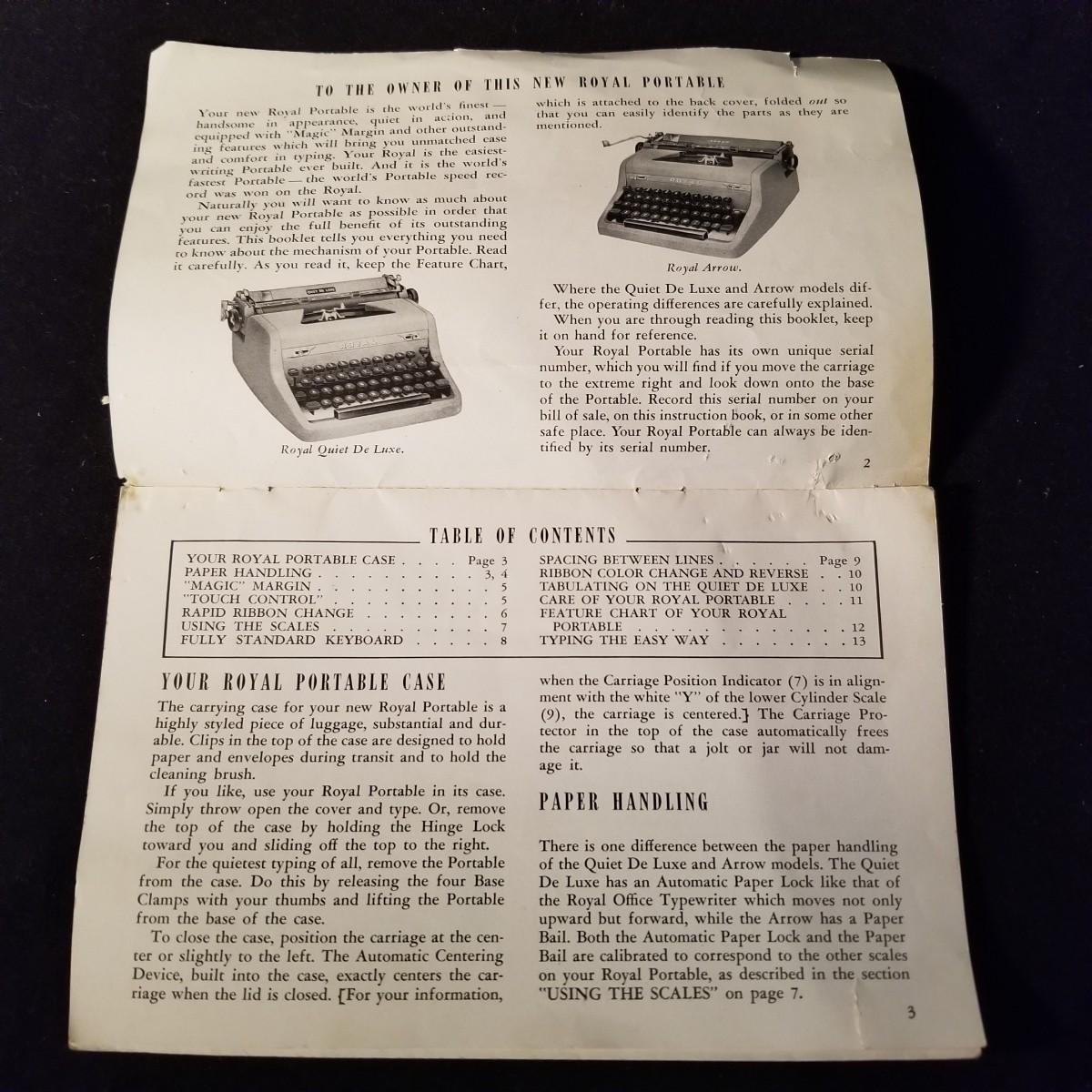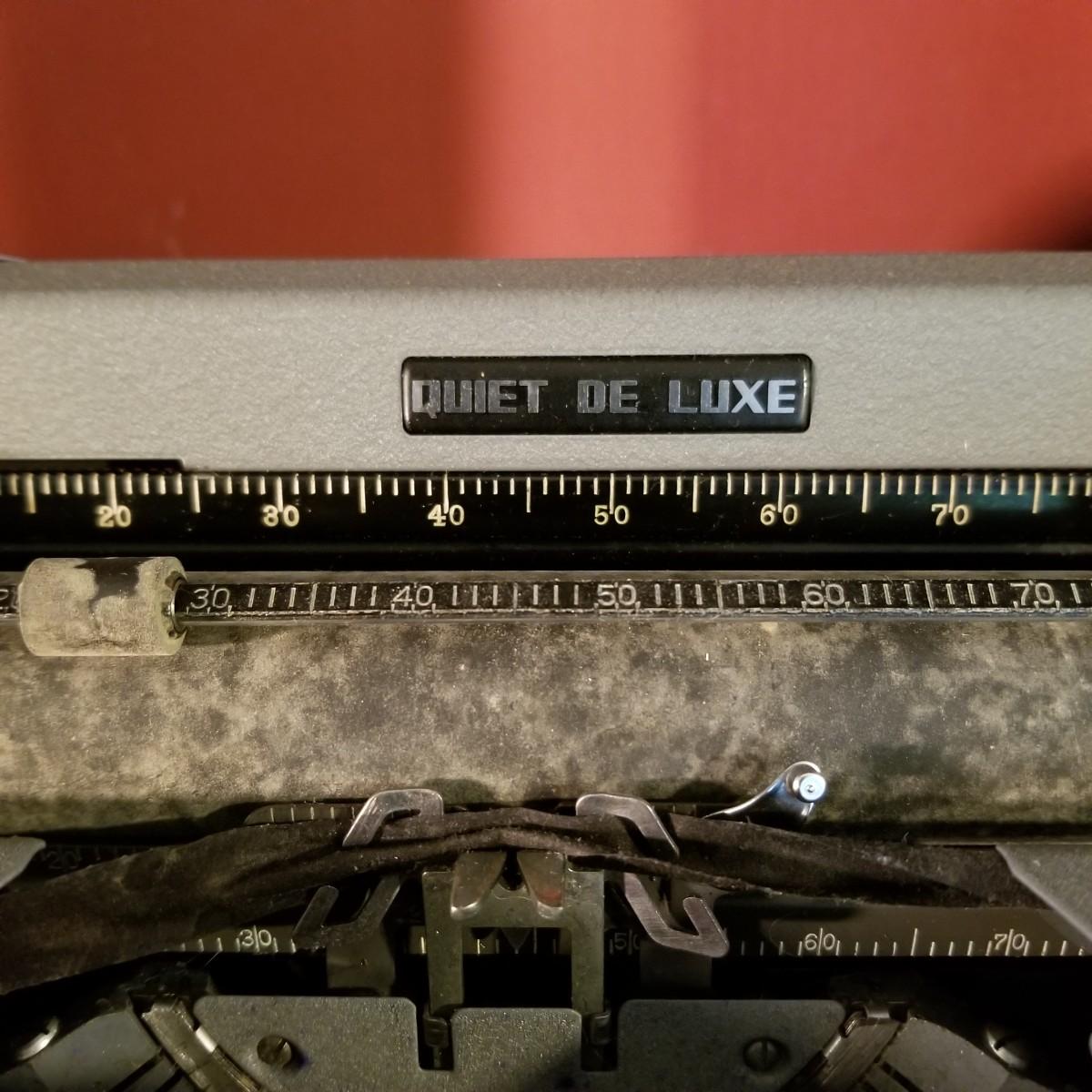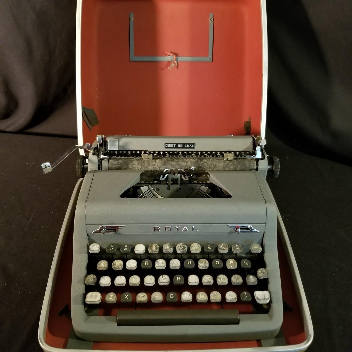 The Quiet De Luxe model from Royal. Comes with original hard case and original manual. Untested, needs some TLC and cleaning. Fair condition. Typewriter is 12" x 12" x 6", with case, 14" x 14" x 8".  Shipping available.