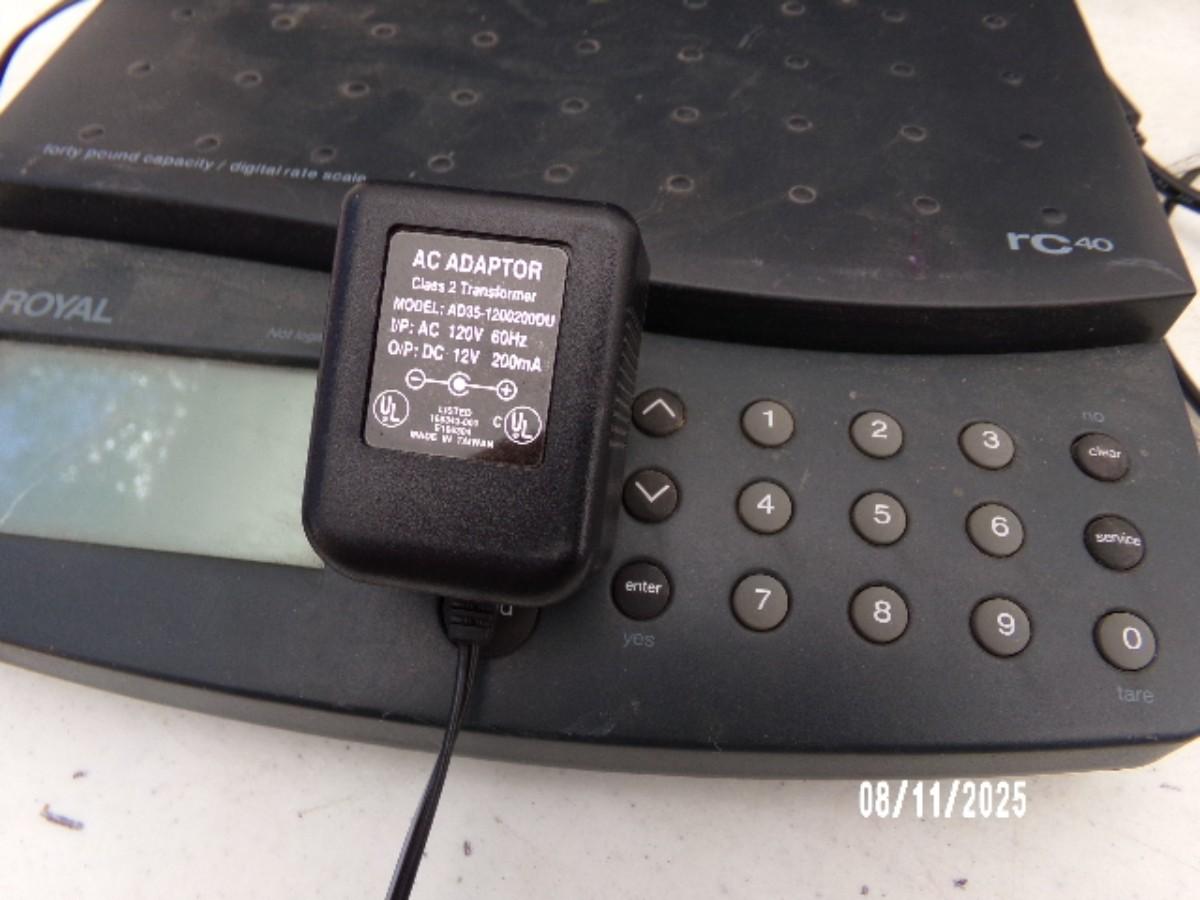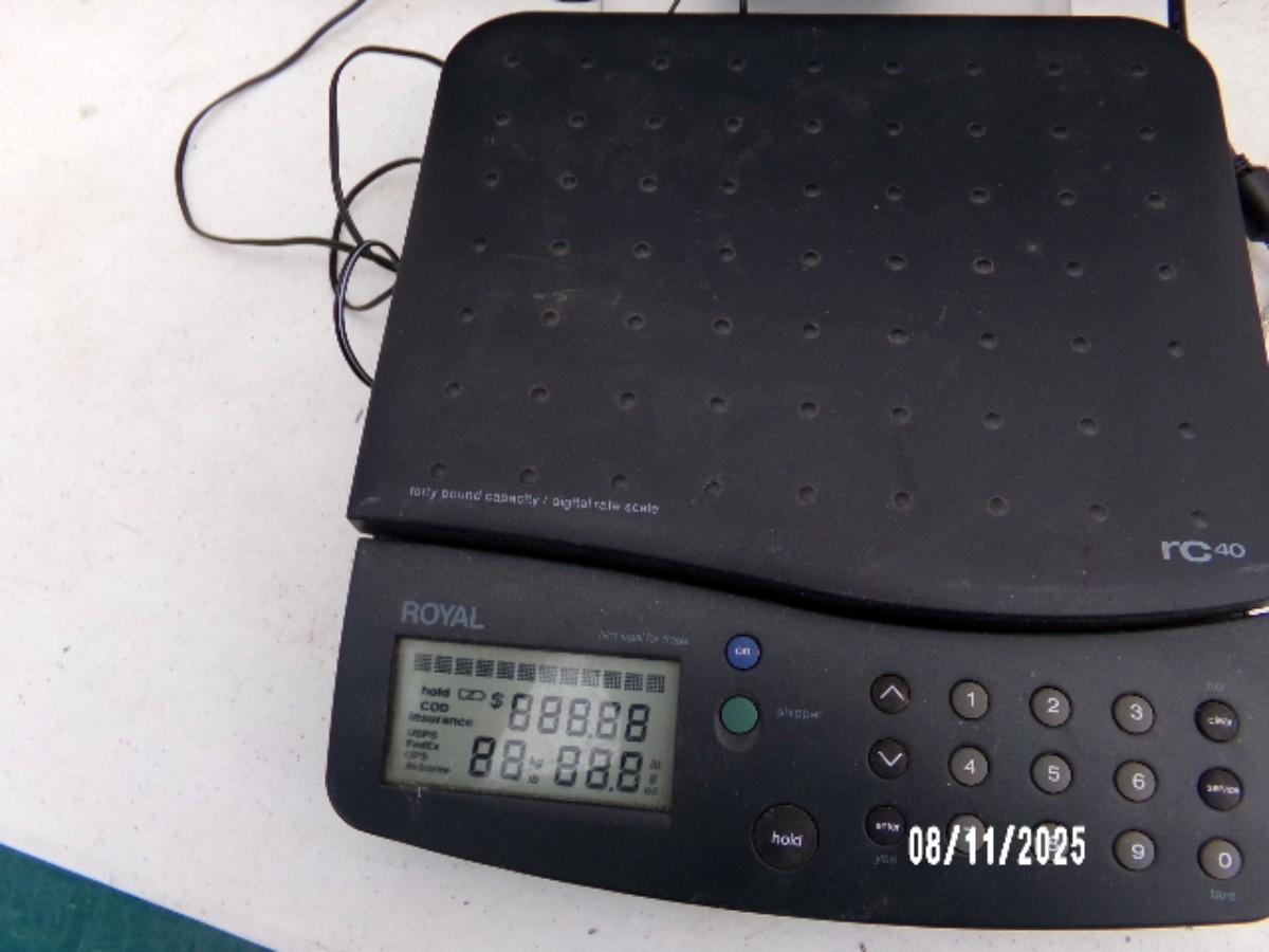 Royal rc40 digital office scale. Runs on batteries or AC power. 40 pounds capacity. Powers on OK but not tested for accuracy.