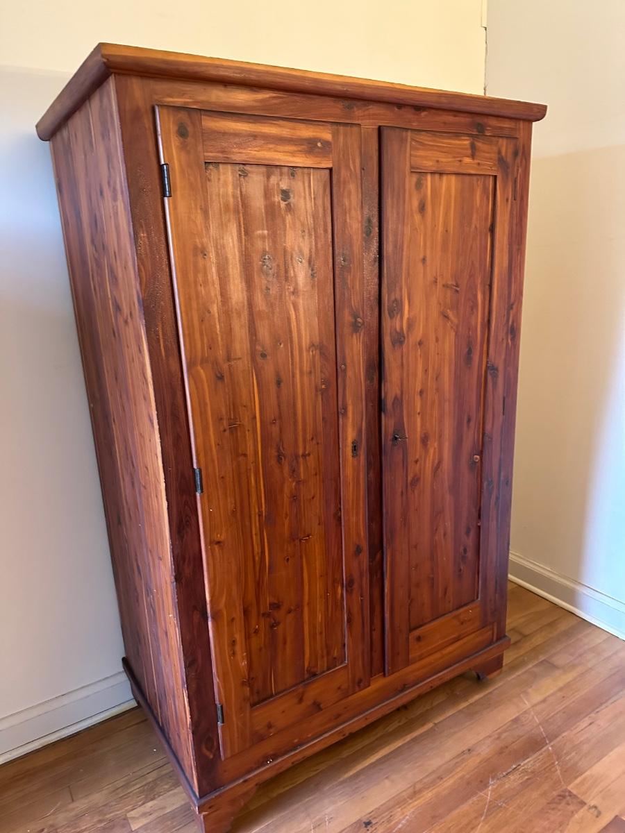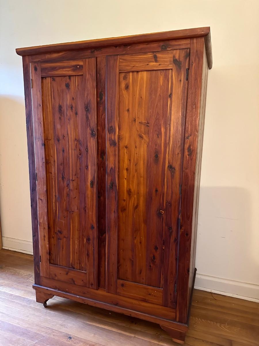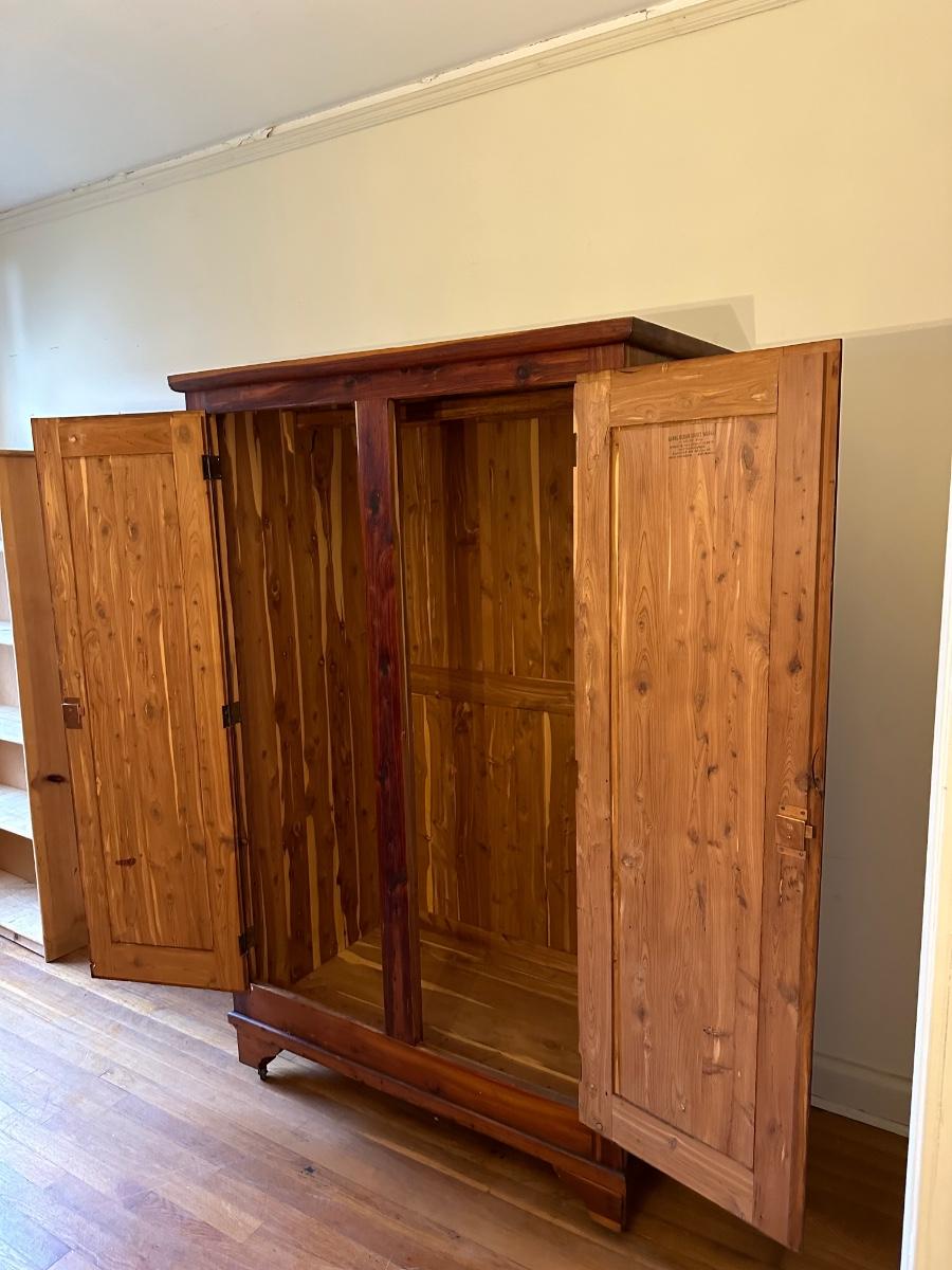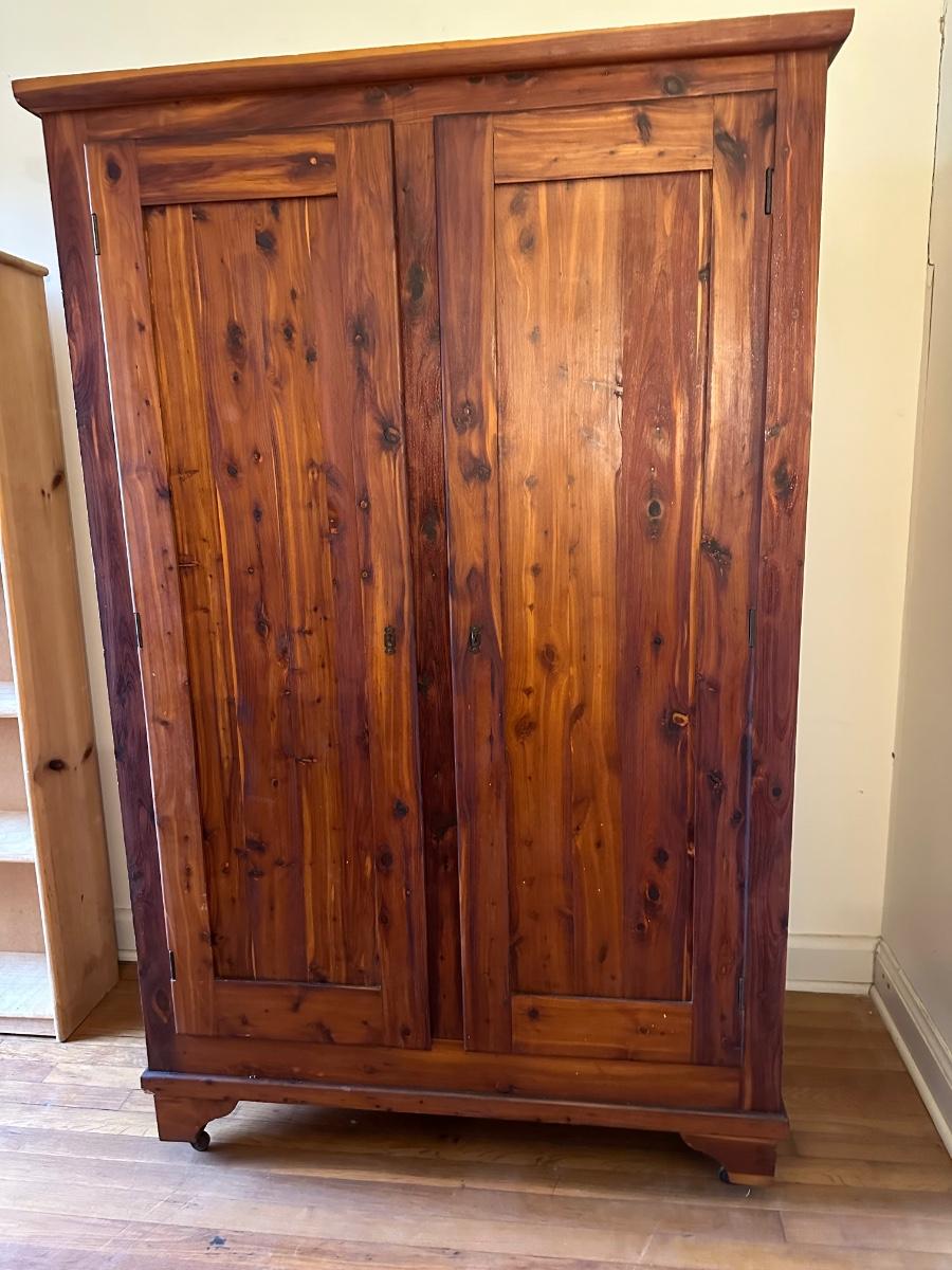 Genuine red cedar wardrobe from Royal Street ON wheels. Key works and locks the door.