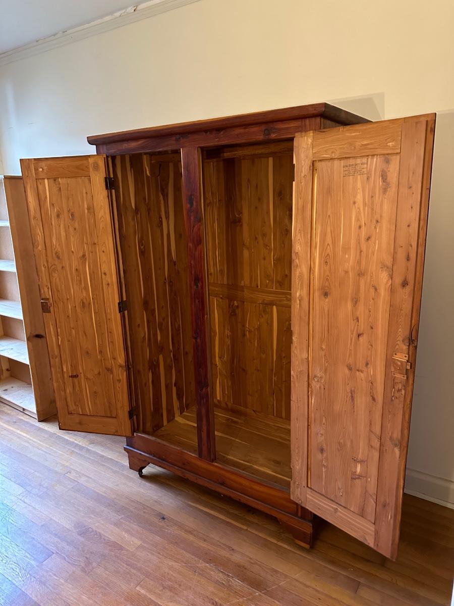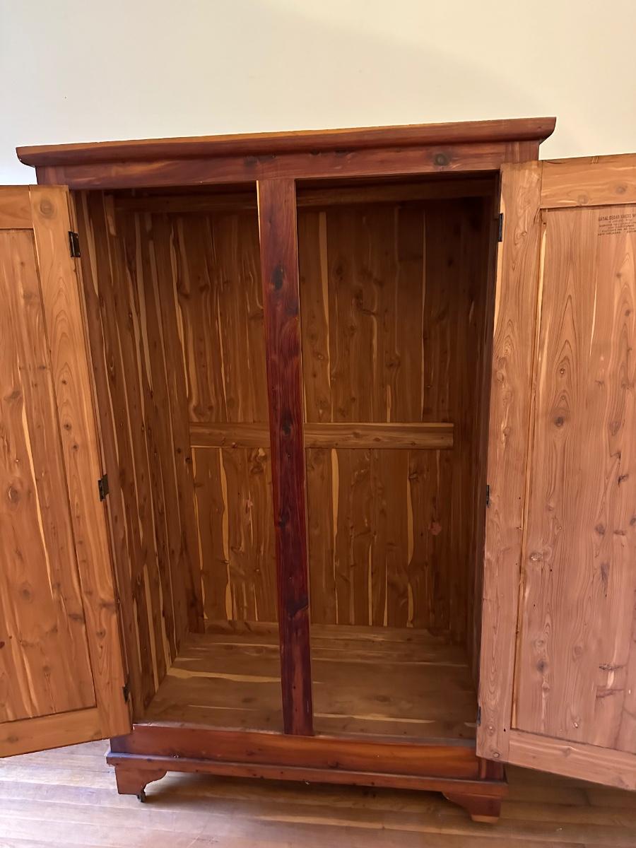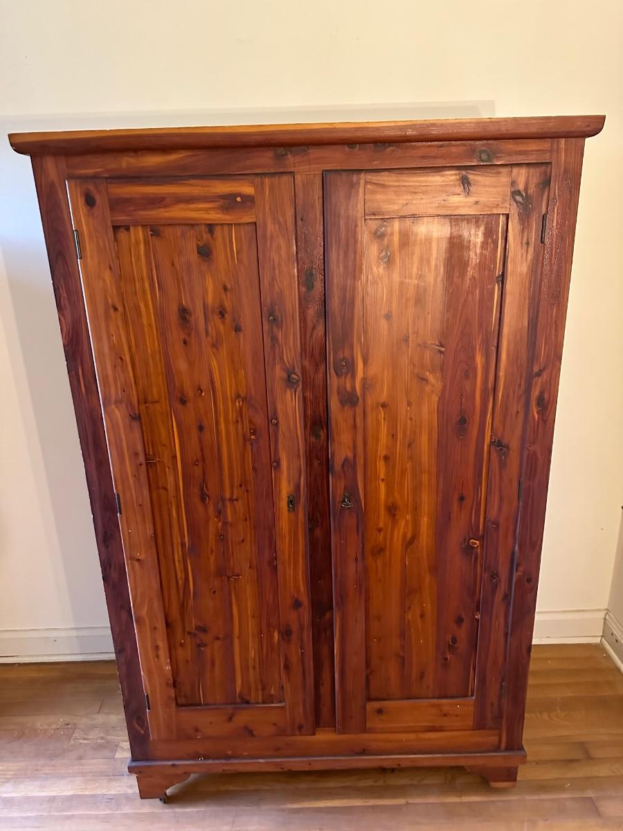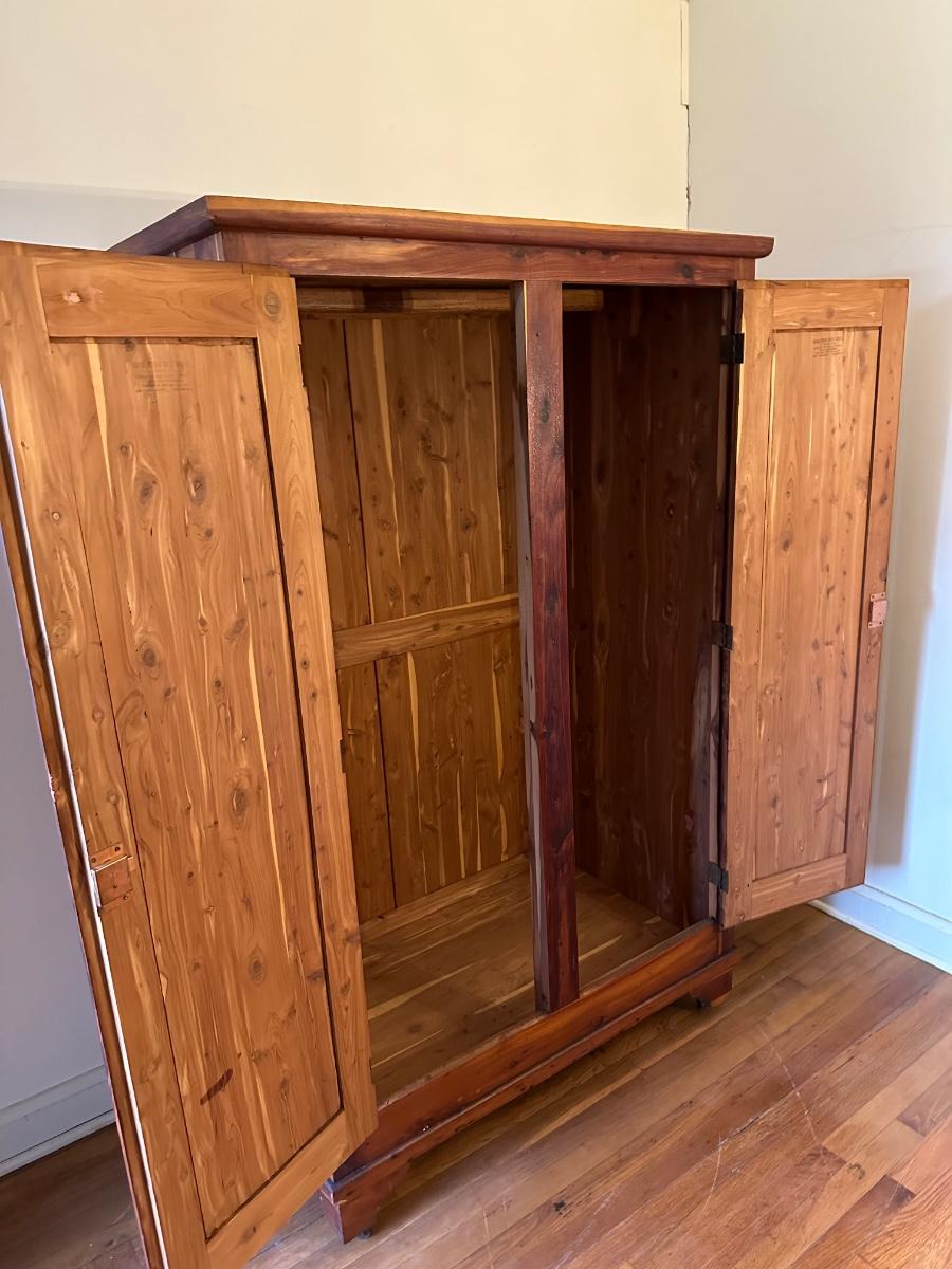 Genuine red cedar wardrobe from Royal Street ON wheels. Key works and locks the door.