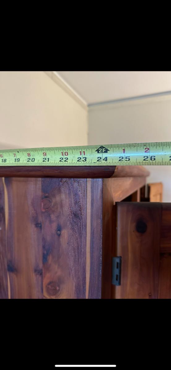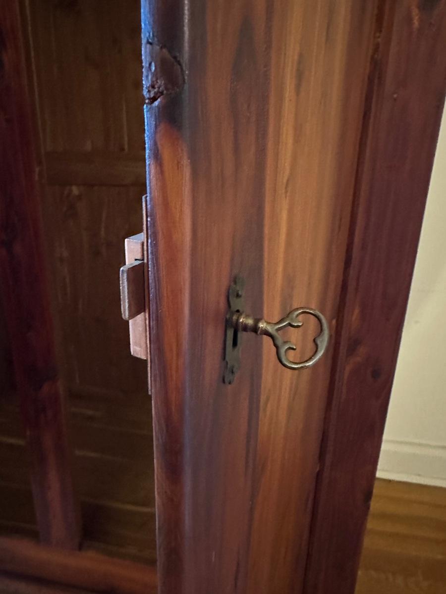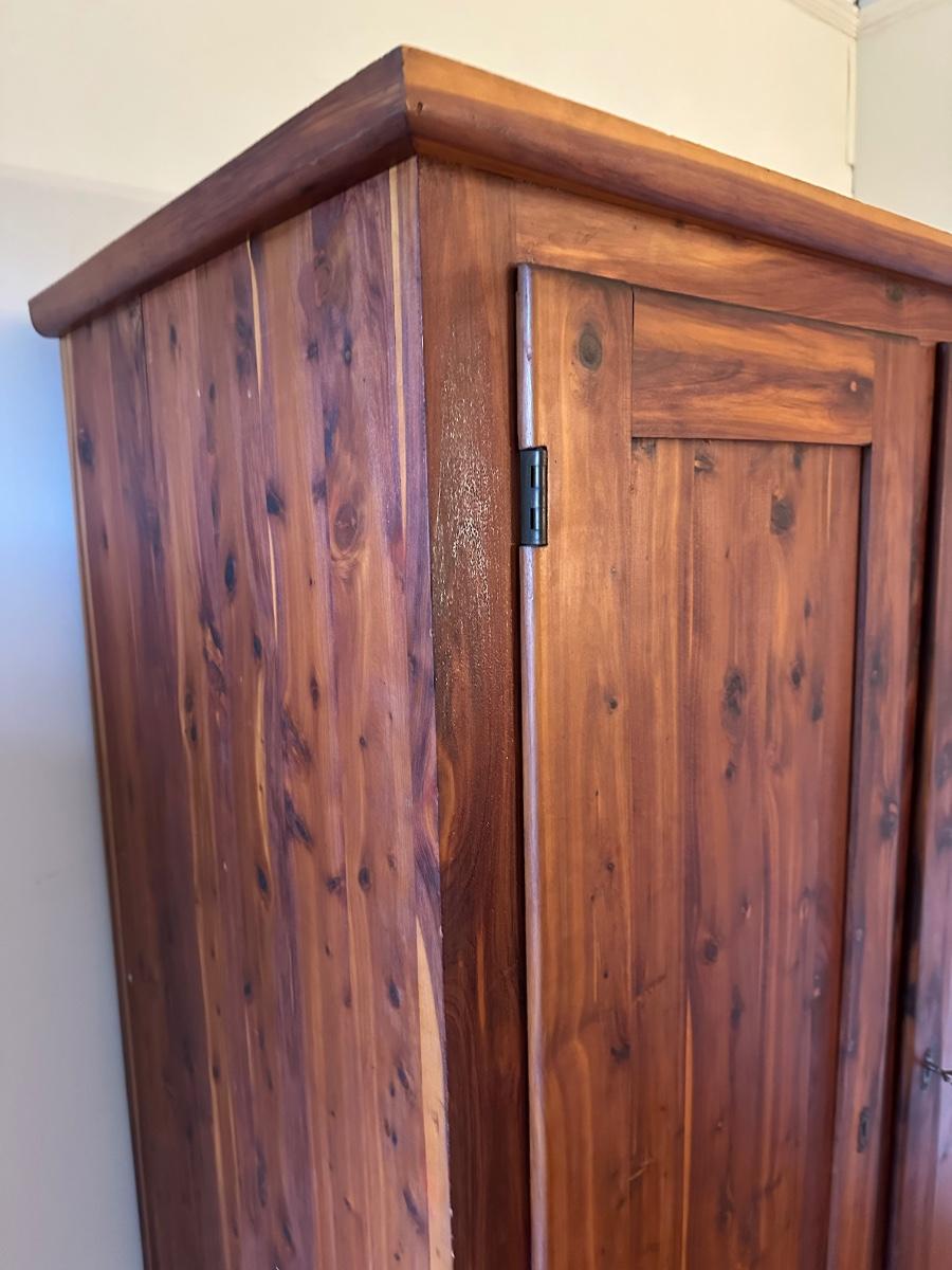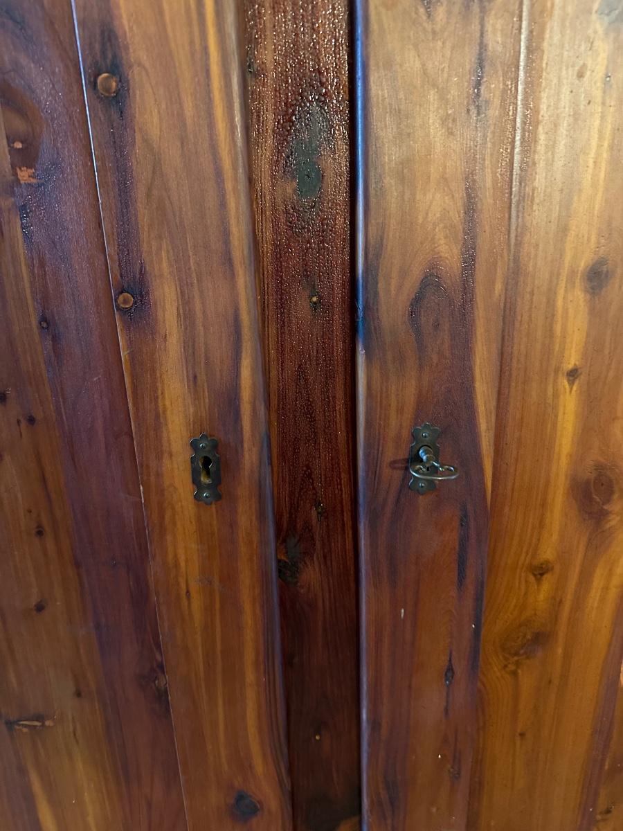 Genuine red cedar wardrobe from Royal Street ON wheels. Key works and locks the door.