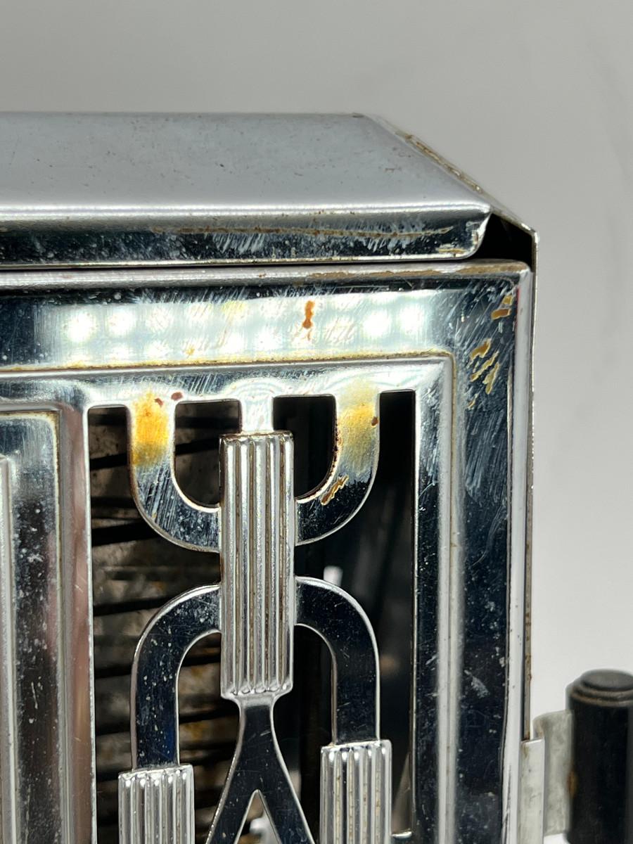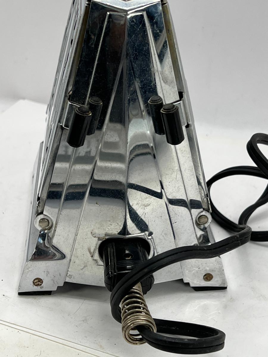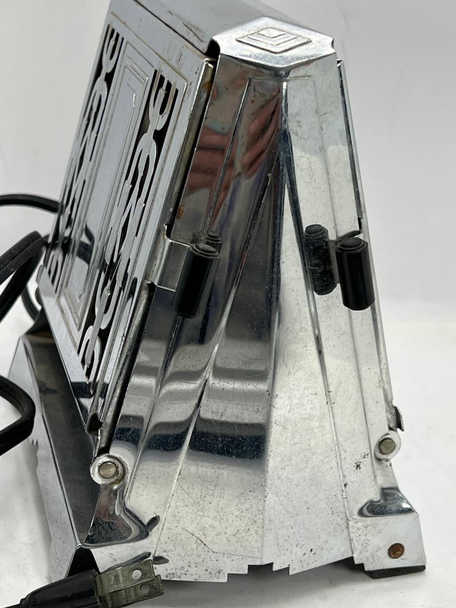 13270 Art Deco Chrome 2 sided toaster, Unit is being sold as a "non-working" vintage electronic device that should be gone over by a qualified technician prior to use. May have rust, corrosion or other flaws see pictures.