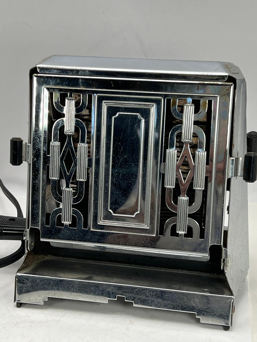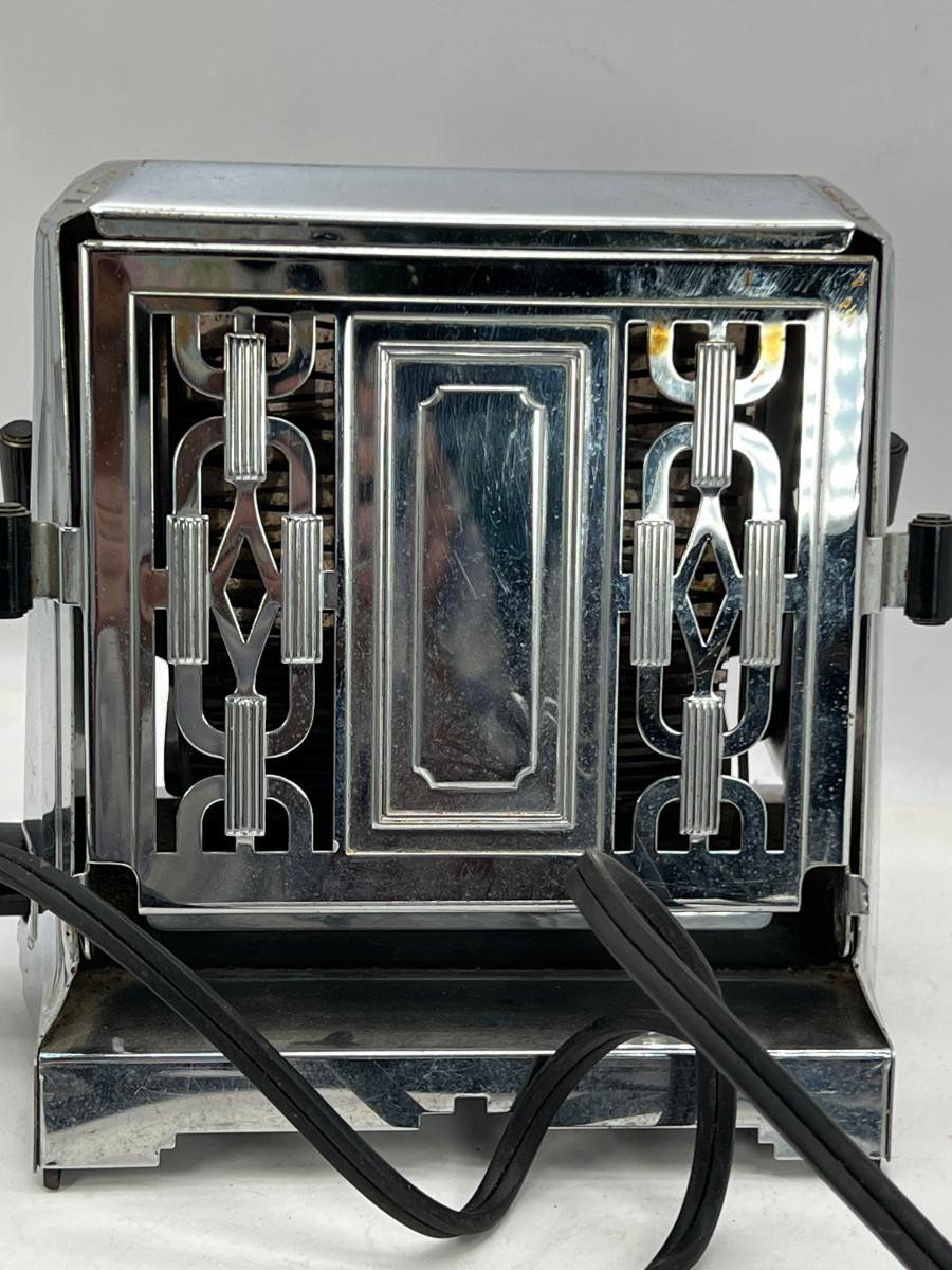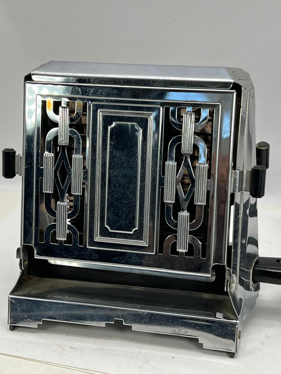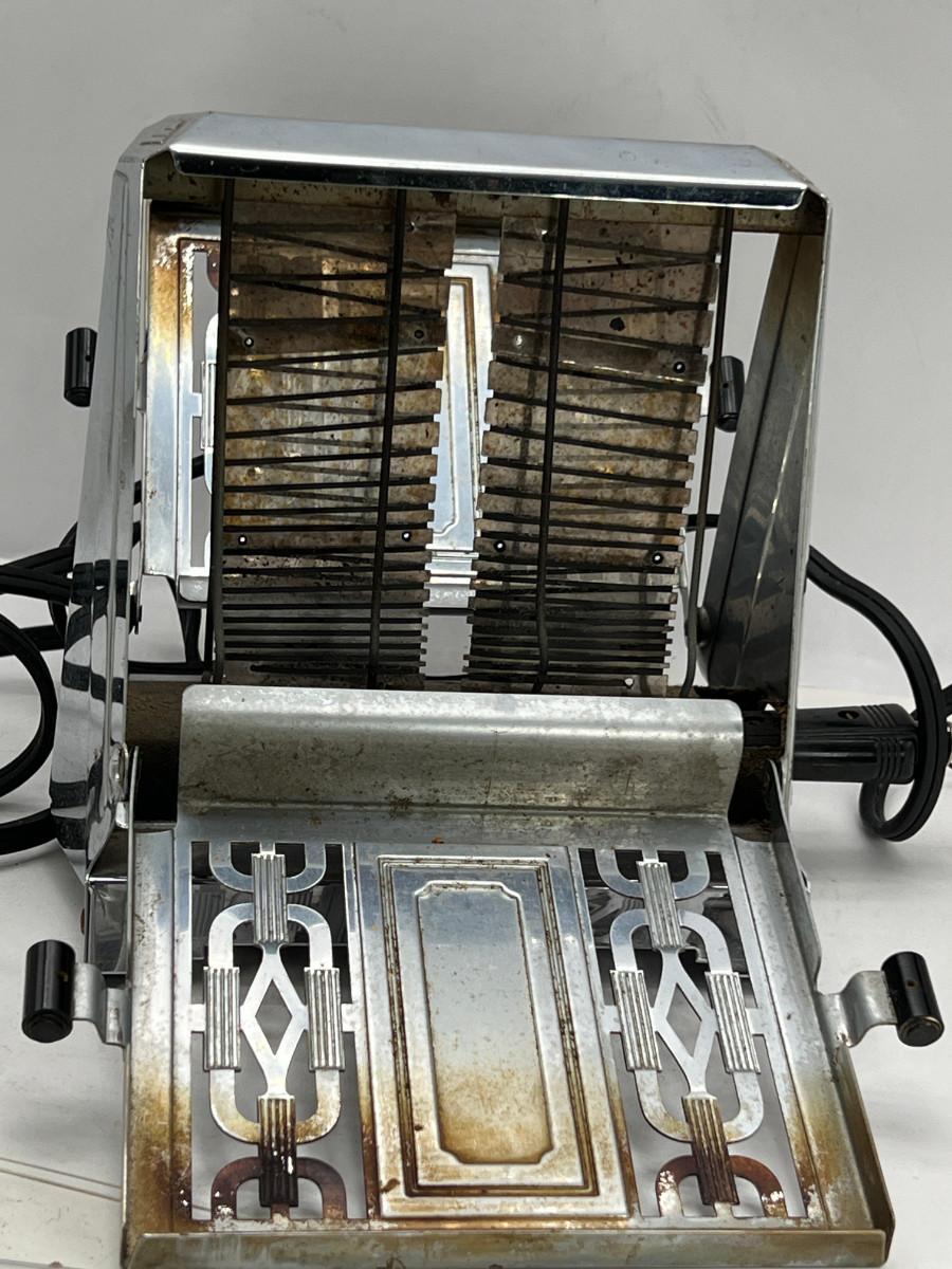 13270 Art Deco Chrome 2 sided toaster, Unit is being sold as a "non-working" vintage electronic device that should be gone over by a qualified technician prior to use. May have rust, corrosion or other flaws see pictures.