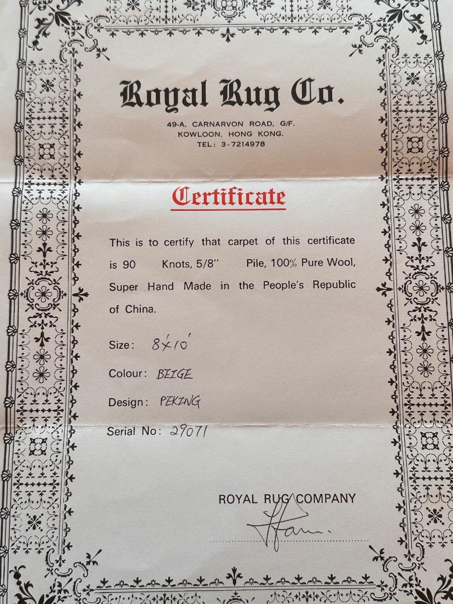 ROYAL RUG CO ~ Pure Wool Rug ~ 8 x 10 ~ Peking ~ *Read Details