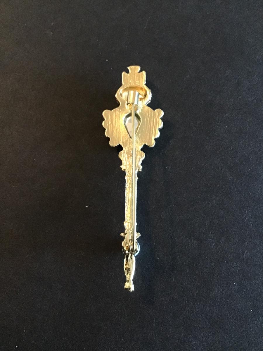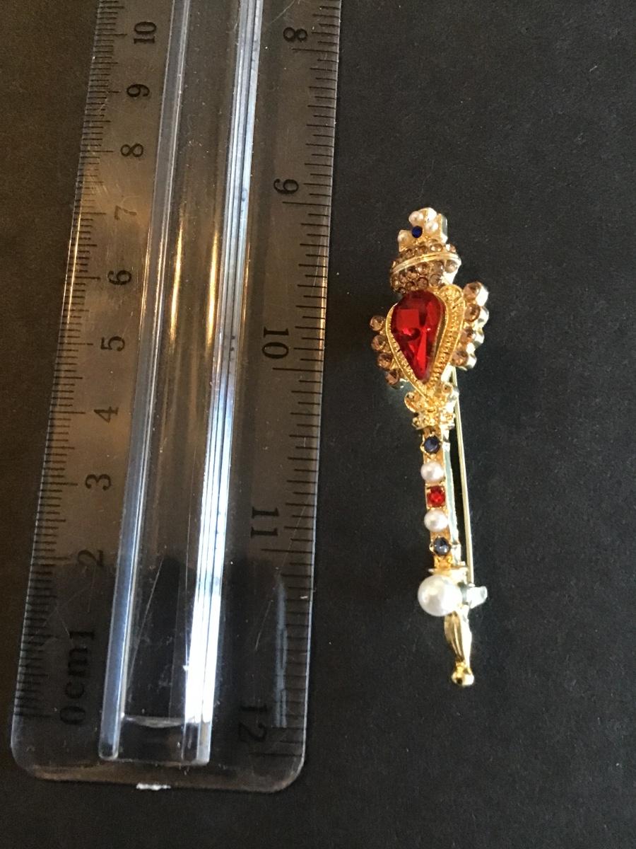 Royal scepter gold tone with multi color rhinestones and faux pearls Please see attached photos
