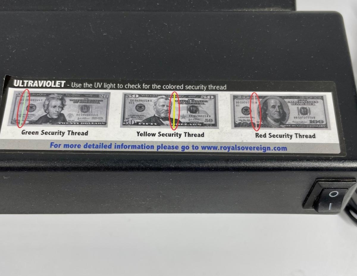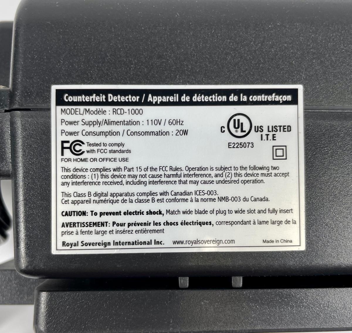 Model RCD-1000. Can be used to check US $20, $50 and $100 bills. Near new condition.