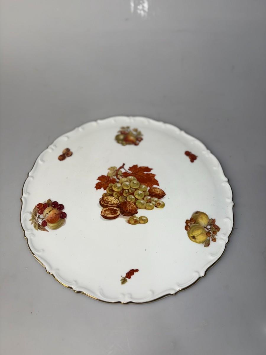 Royal Tettau Bruavia Germany scallopped plate featuring hand-painted fruits