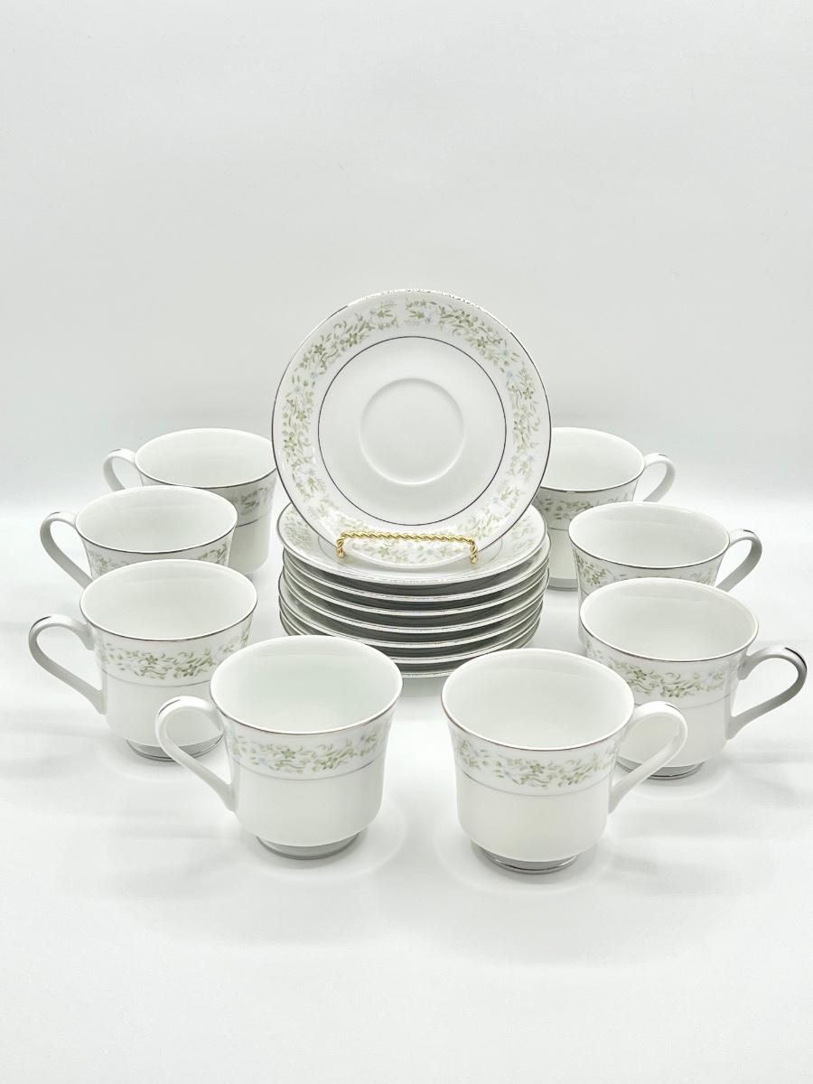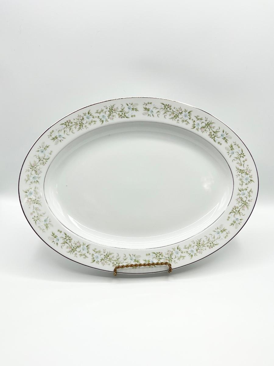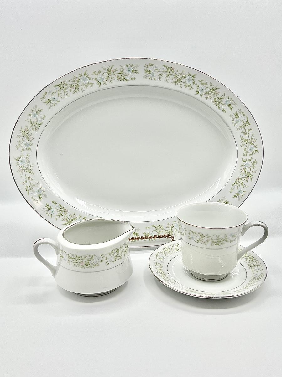 Set includes: (1) 14” Serving platter, 1 creamer, 8 footed cups, 8 saucers
