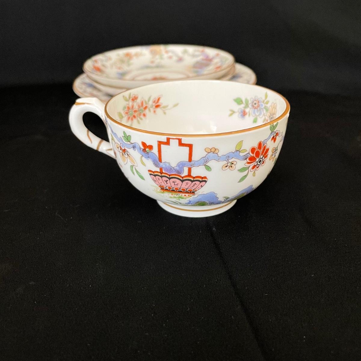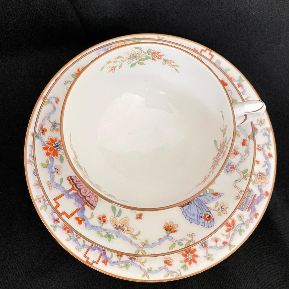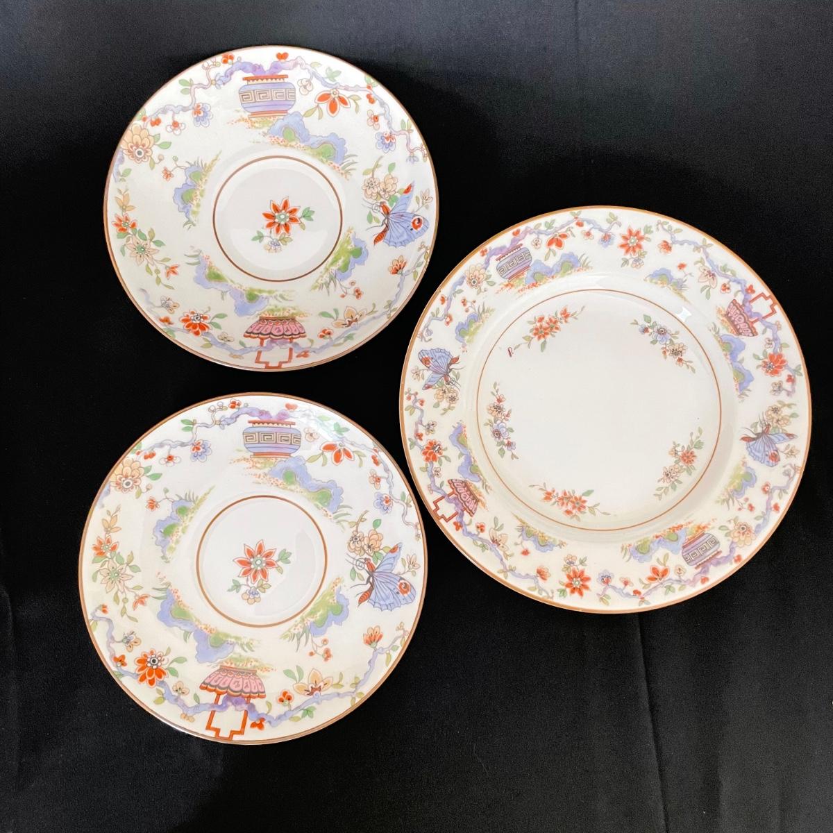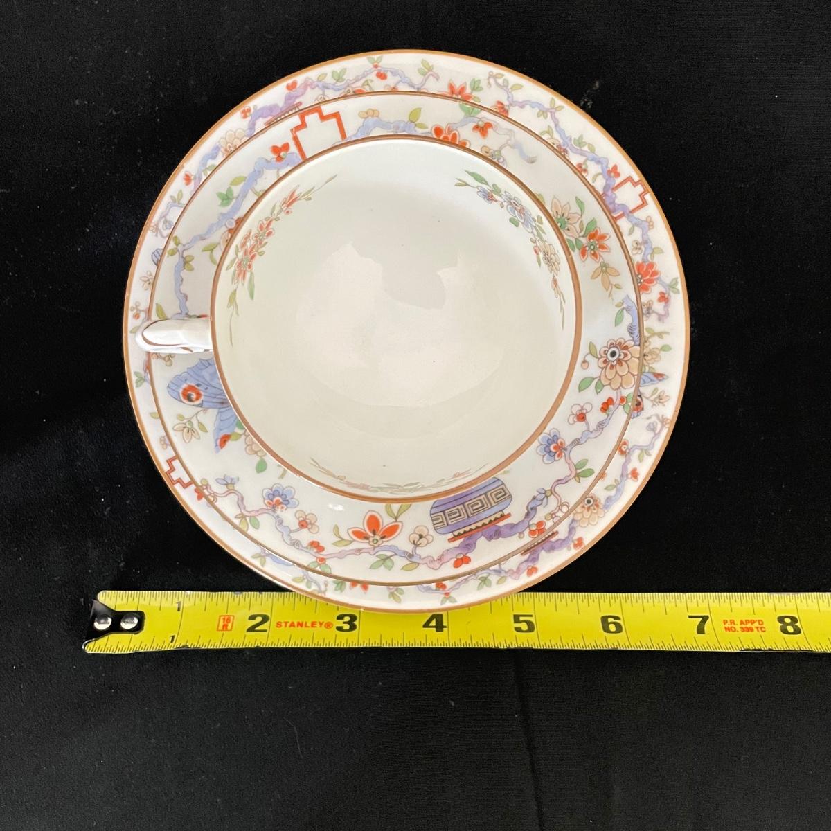 Beautiful set by Royal Worcester includes one teacup, two saucers and one plate just over 6” in diameter. See images. Shipping available.