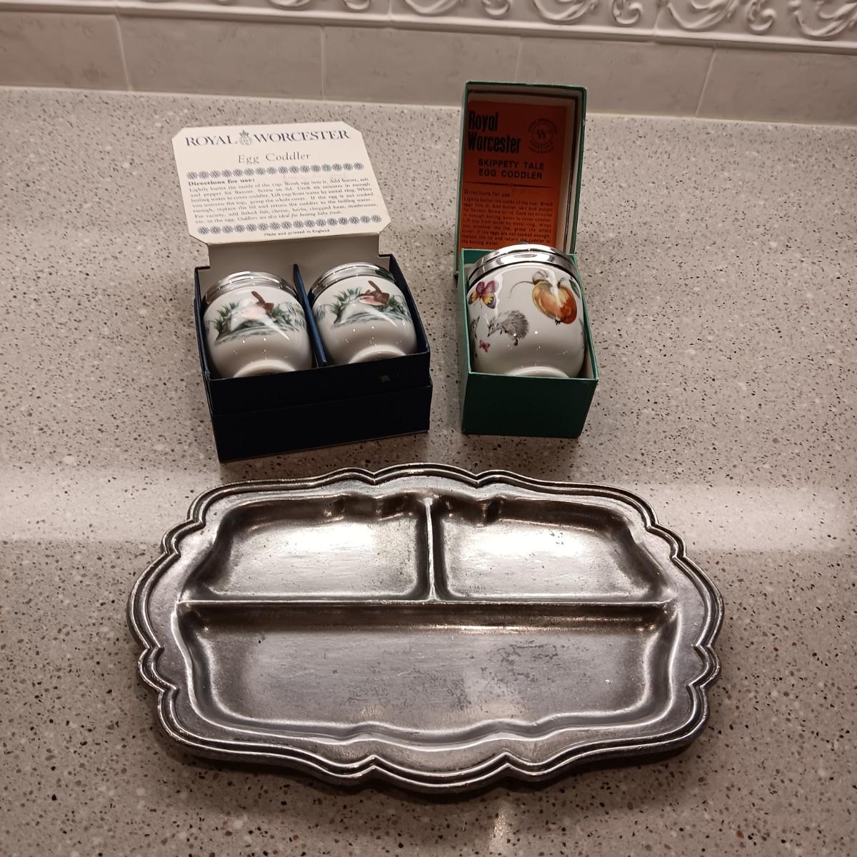 ROYAL WORCESTER EDD CODDLERS AND A WILTON PEWTER SECTIONED PLATE