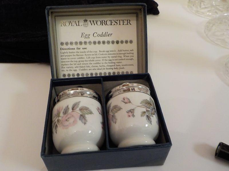New with box a Royal Worcester egg coddler with flower design , never used and box like new.