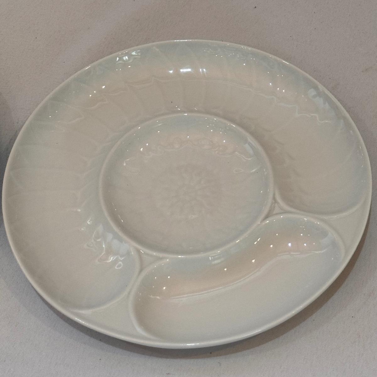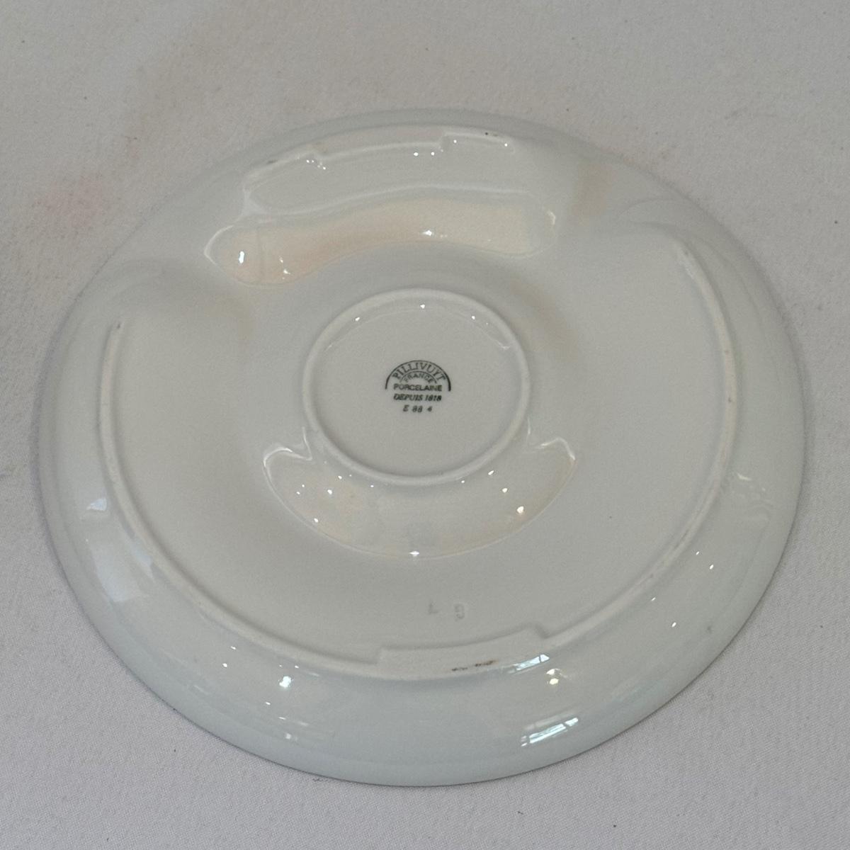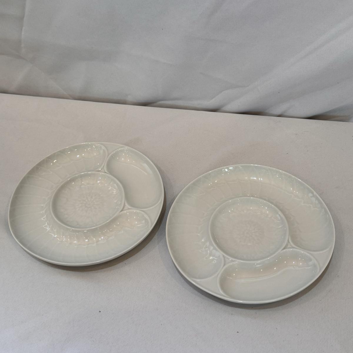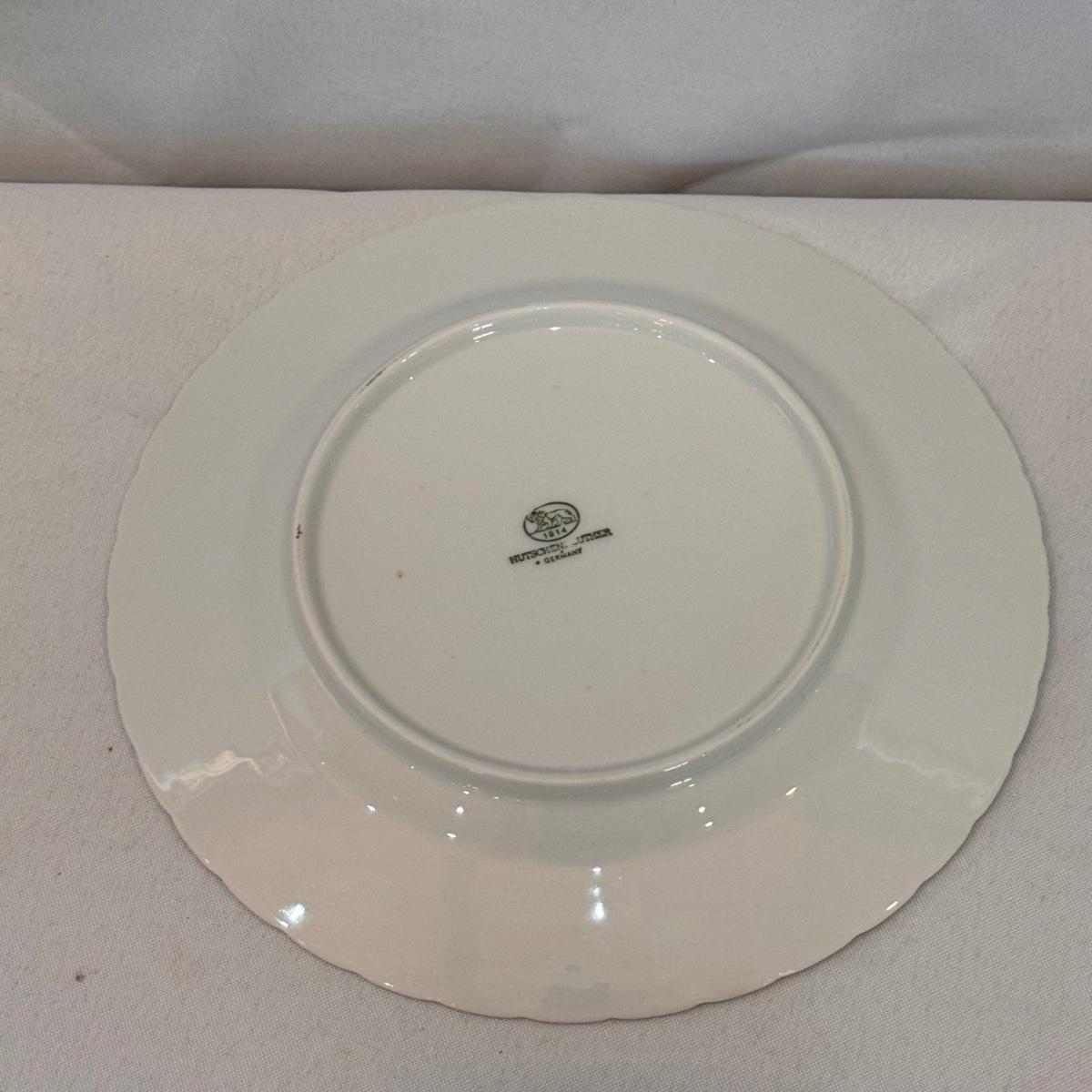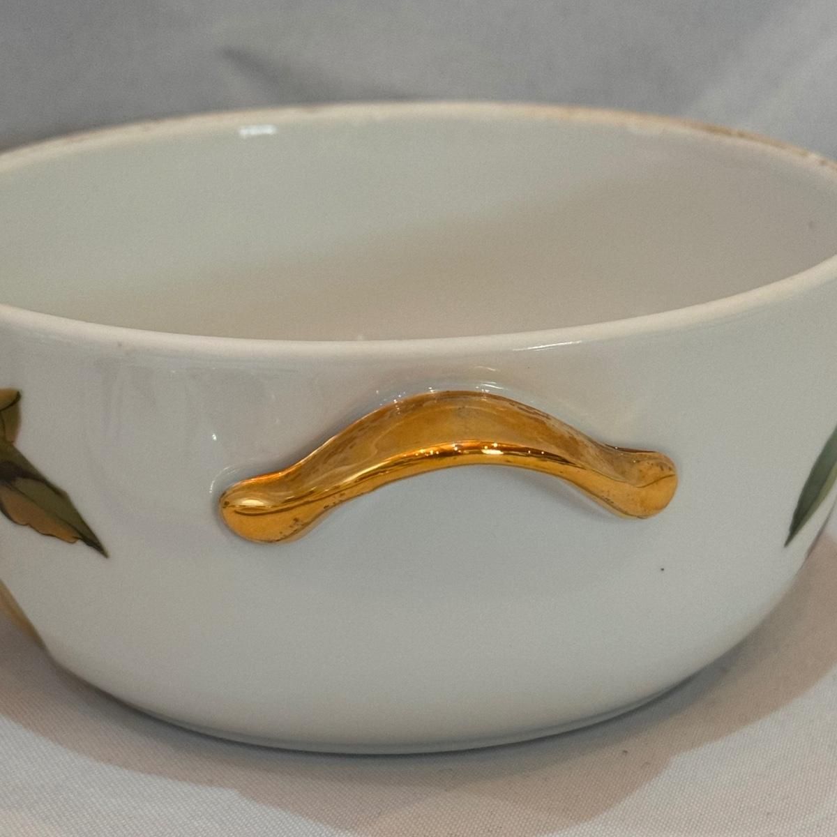 This lot includes two Royal Worcester china bowls with lids in various sizes from the Evesham collection, two porcelain artichoke plates by Pillivuyt, and six porcelain plates by Hutschenreuther. The artichoke plates individually measure 9” x 1”H. Shipping available.