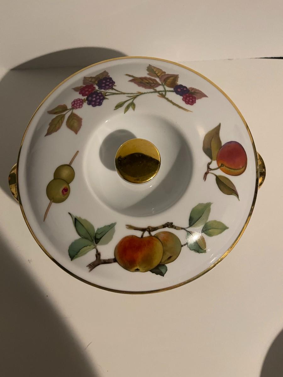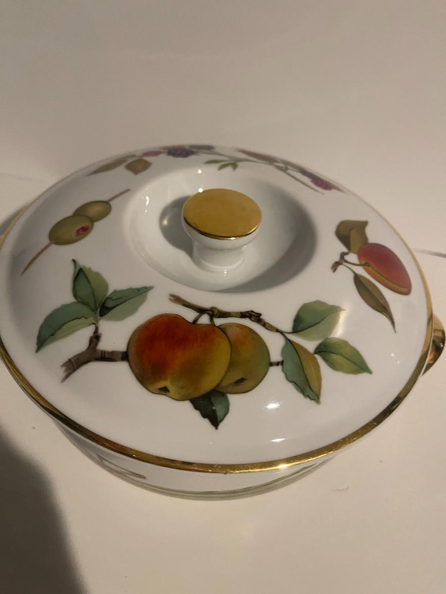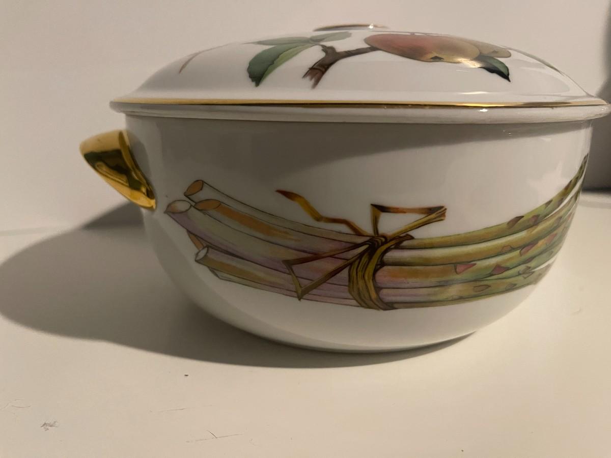 Royal Worcester Evesham Covered Serving Dish with asaparagus. Very good condition. 6 1/2" diameter.