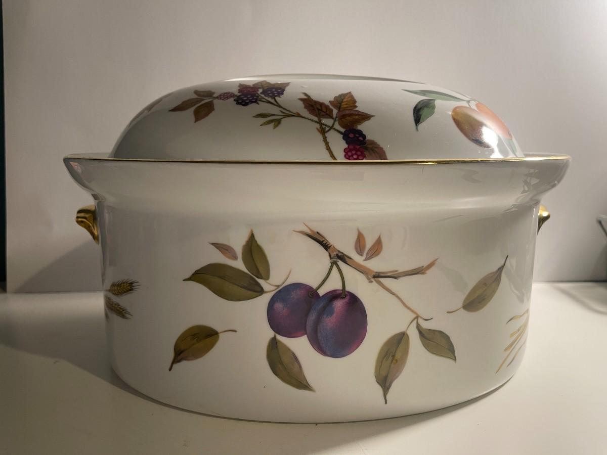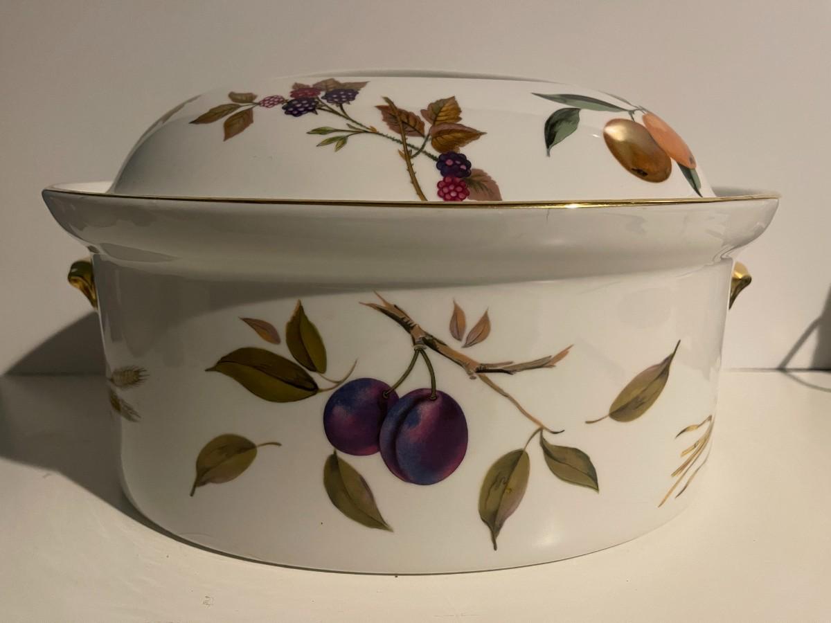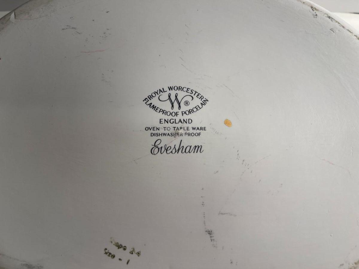 Royal Worcester Evesham Large Oval Covered Casserole / Serving Dish. 12" x 9". Very good condition, minor wear to some of the gold rim on the dish.