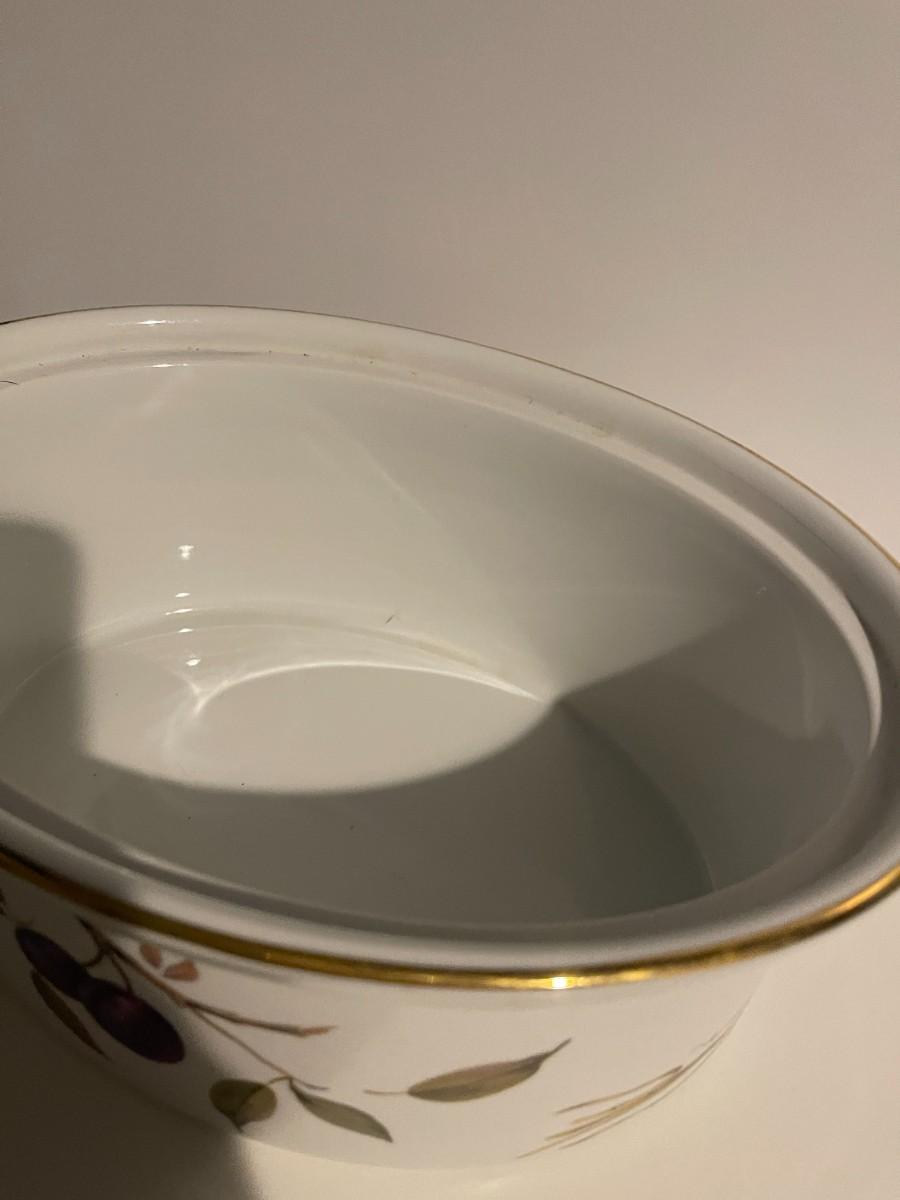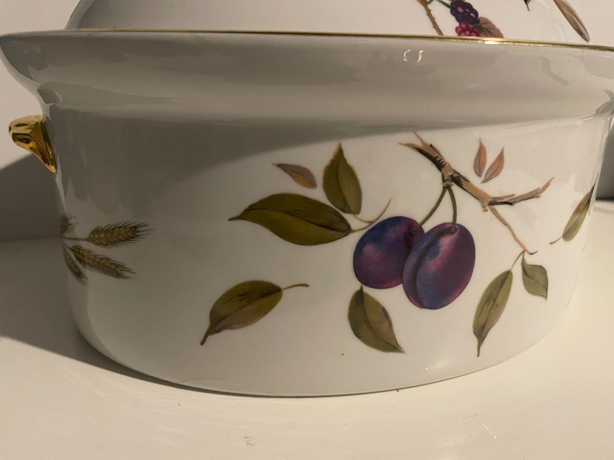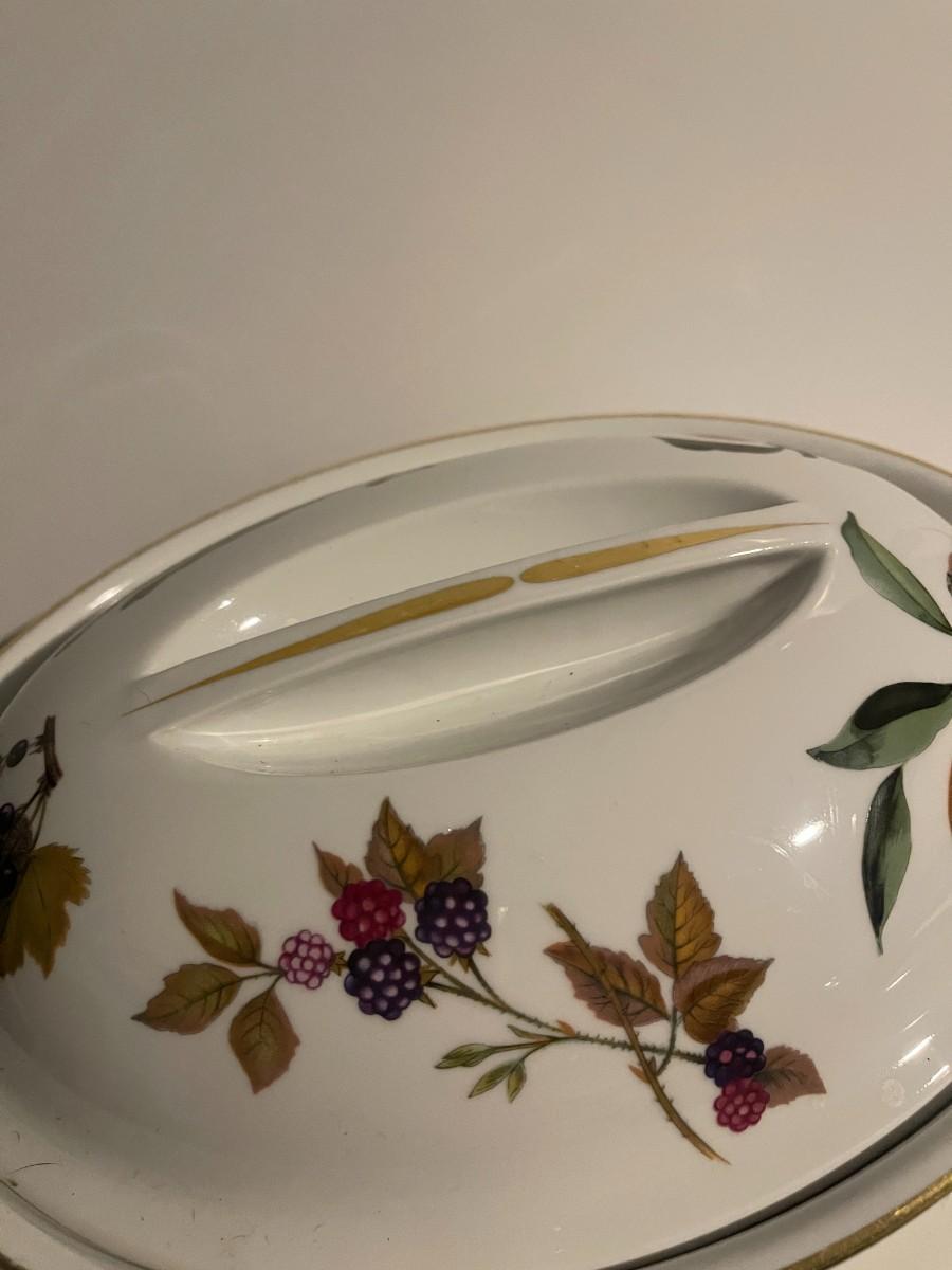 Royal Worcester Evesham Large Oval Covered Casserole / Serving Dish. 12" x 9". Very good condition, minor wear to some of the gold rim on the dish.