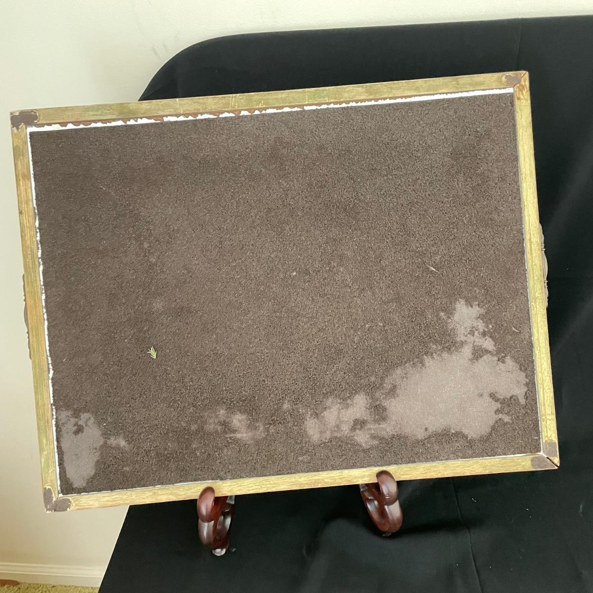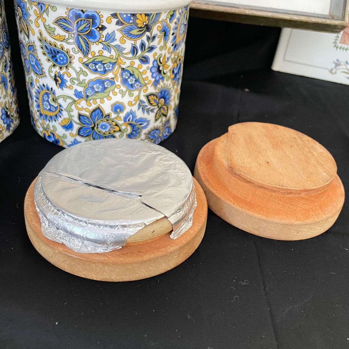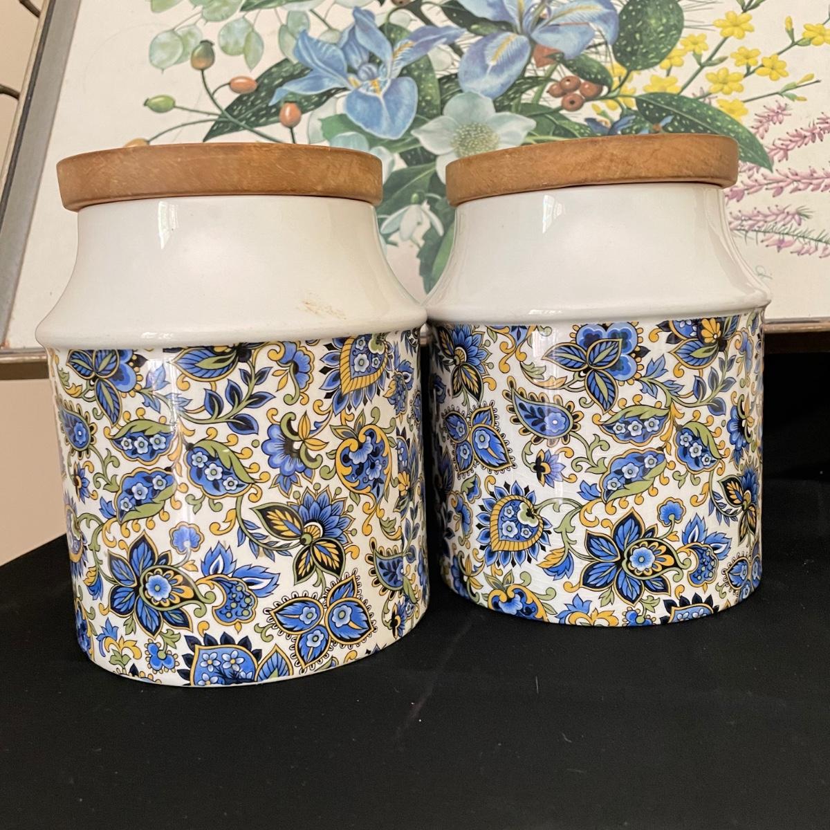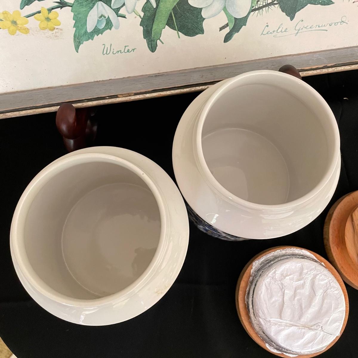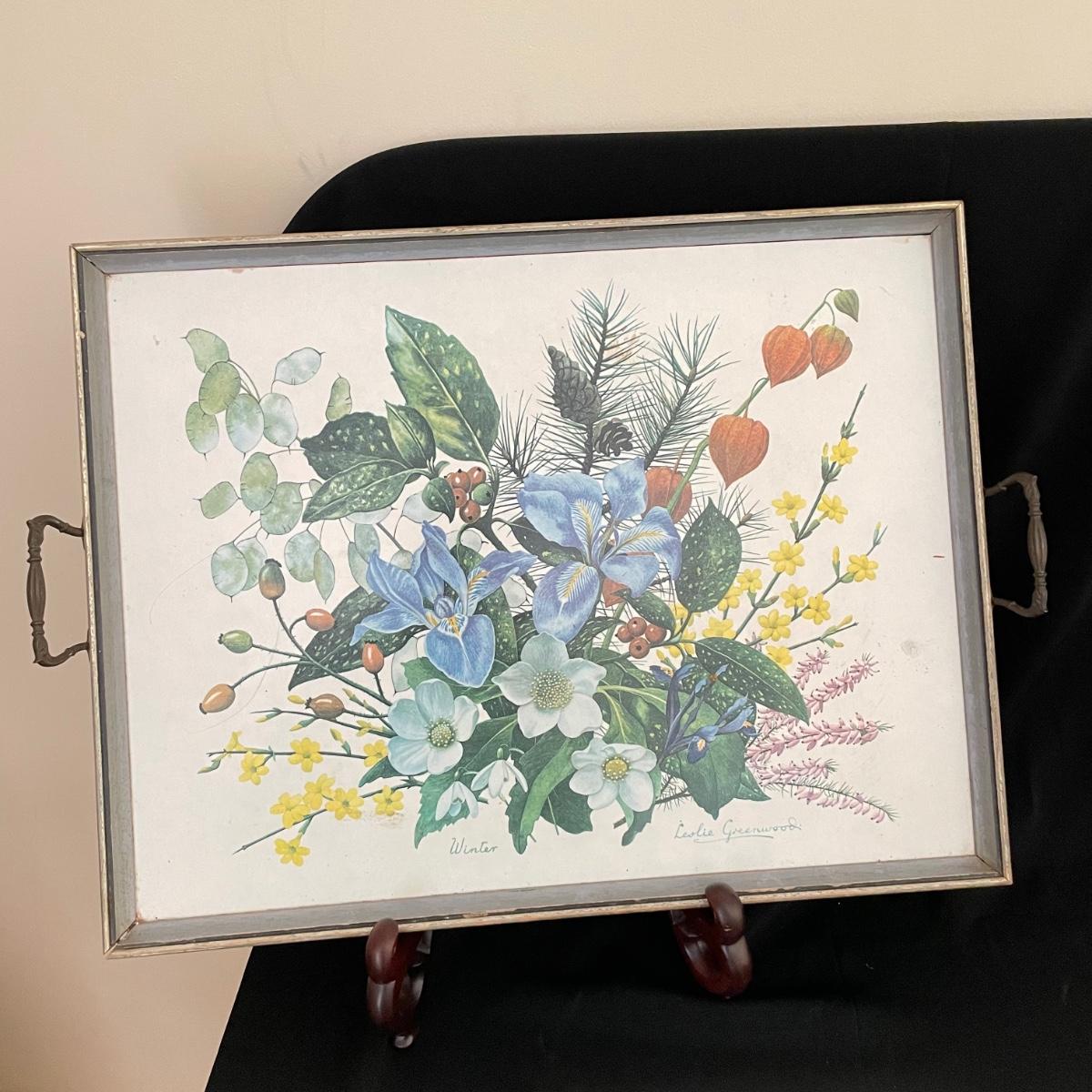 Two Royal Worcester China plates with six ramekins and a cookbook from Port Meirion. Lot also includes a floral tray titled “Winter”, two paisley inspired crocks and wooden stands. The tray measures 21” x 15”. See images. Local pick up only.