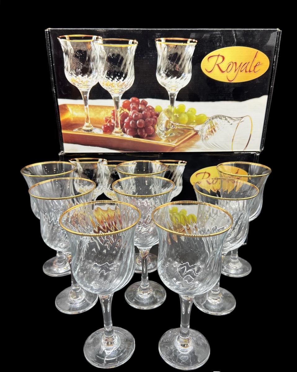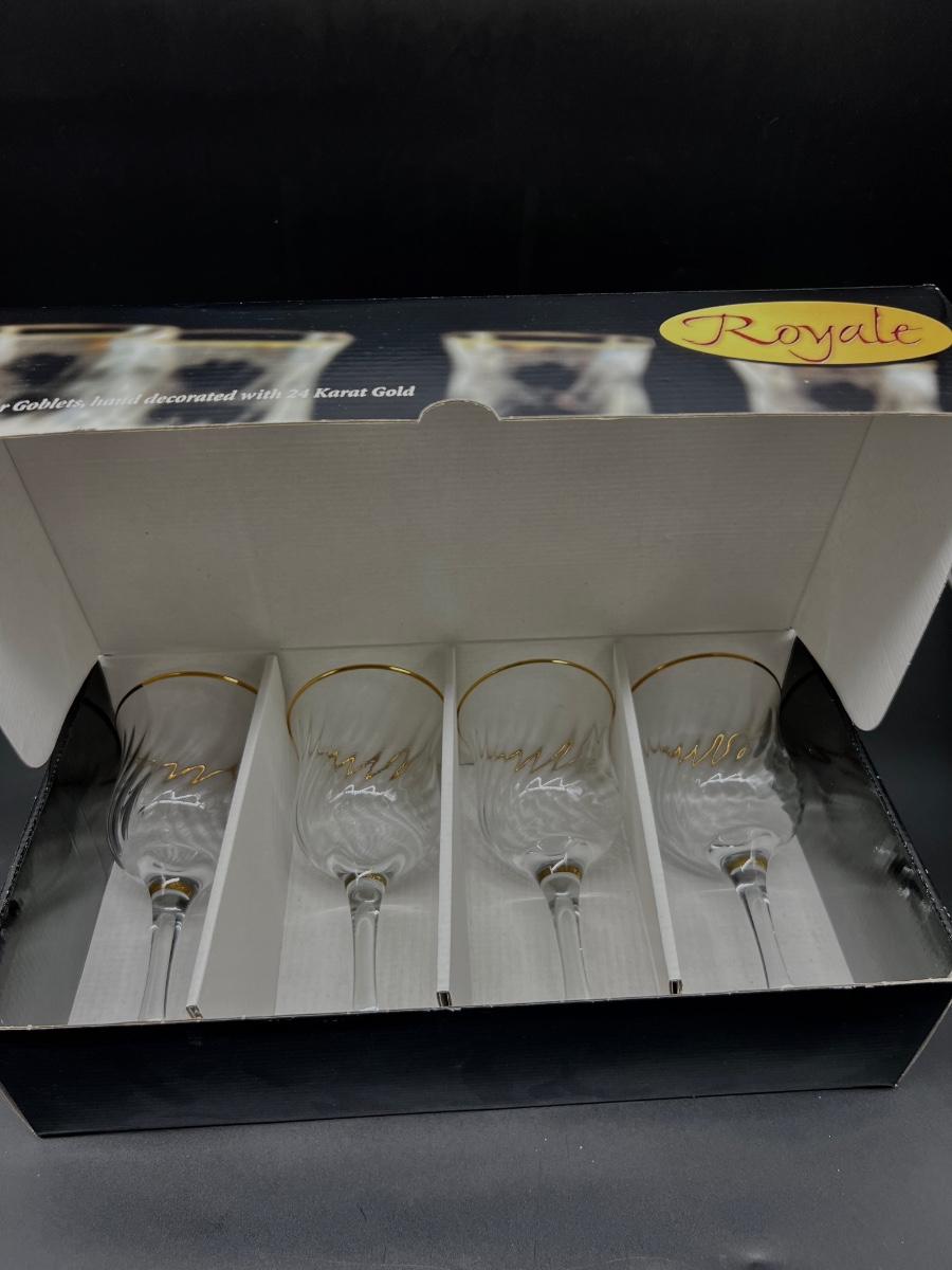 Royale Crystal Collection 8 Set Wine Glasses 24K gold. Comes with two original boxes.