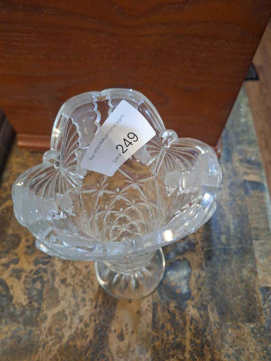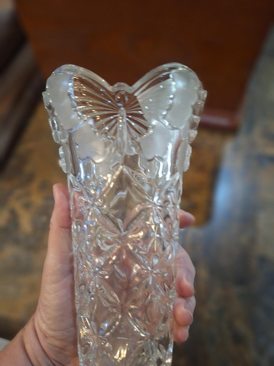 Royales de Champagne crystal vase featuring a cut glass pattern with three frosted butterflies at the rim.
