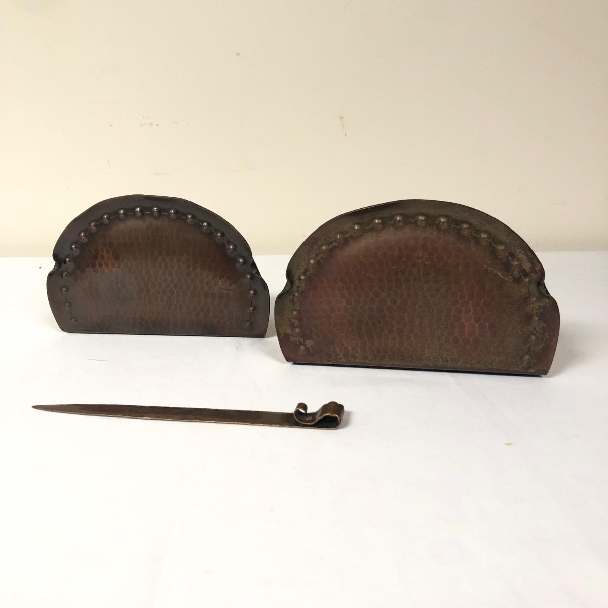 Roycroft Hammered Copper Bookends & Bookmark (FO-KM)
