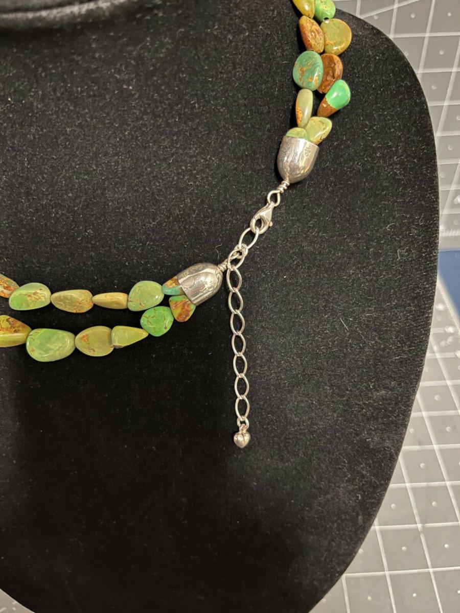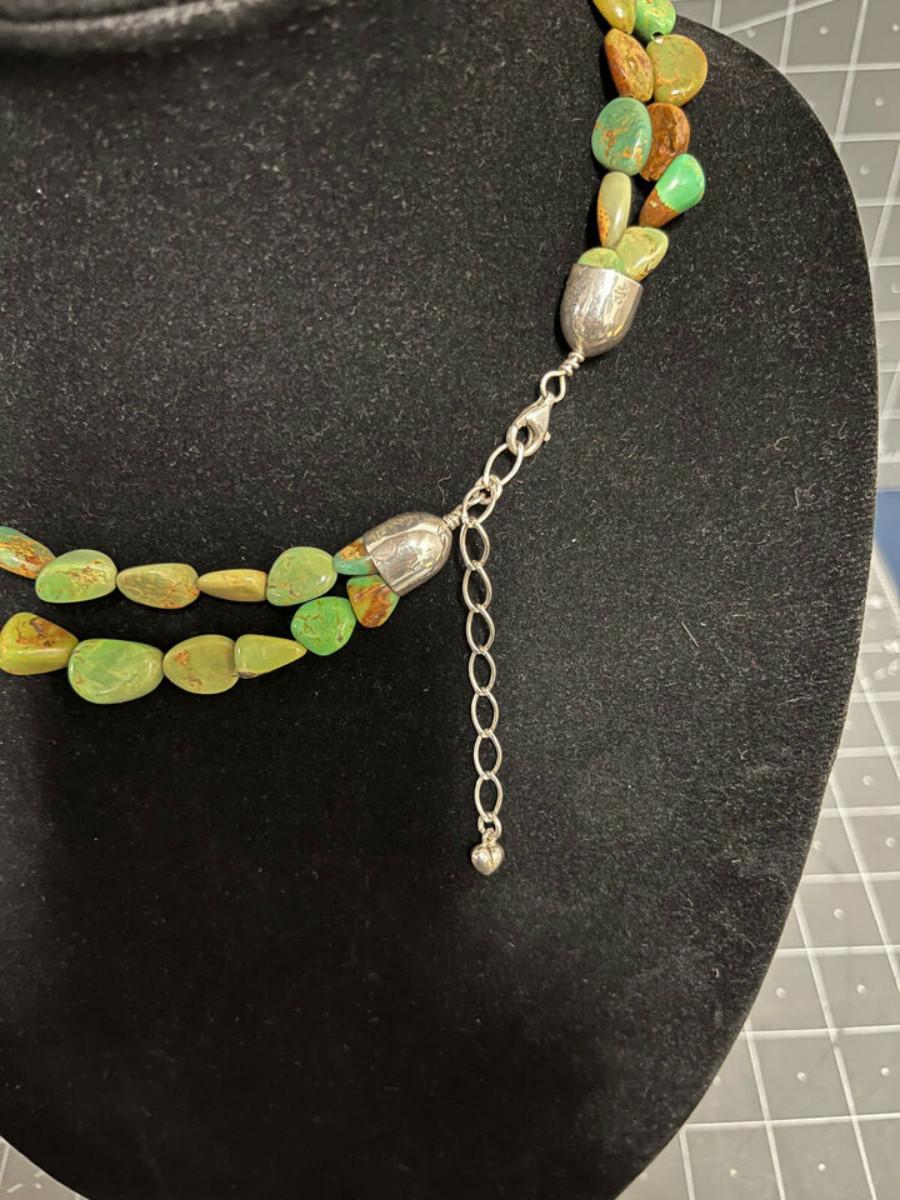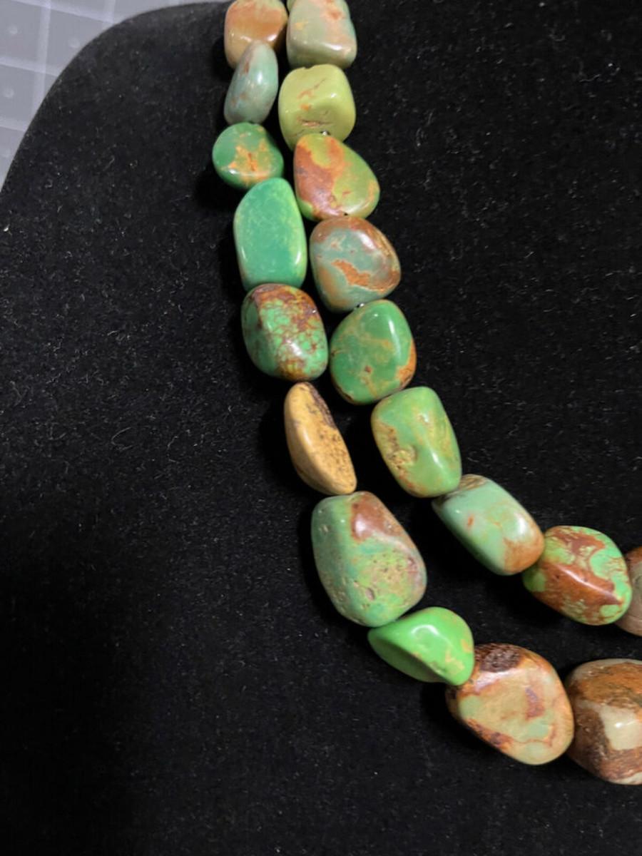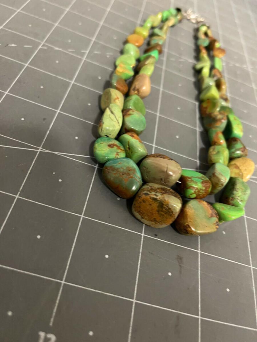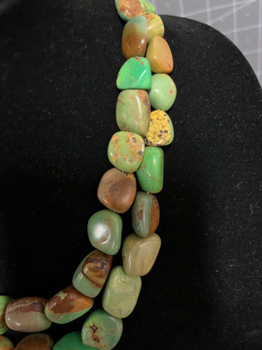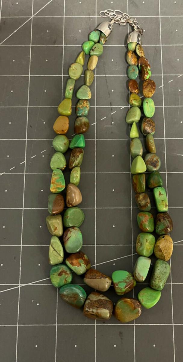 Beautiful Green stone necklace, could be Royston Turquoise, but not 100% sure. .925 clasp marked DTR China, maker is Jay King.