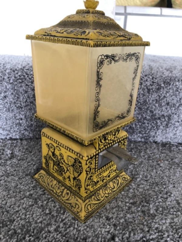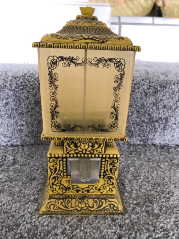 Small Yellow Metal Vintage Counter Top Gumball Machine by Venderette YD#022-0168